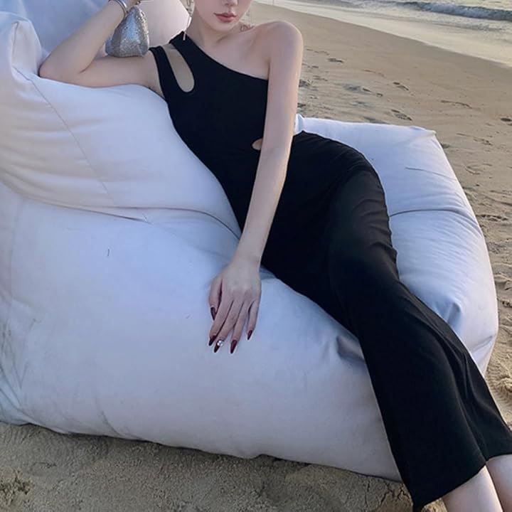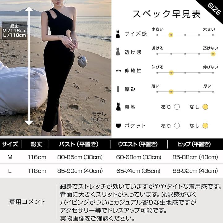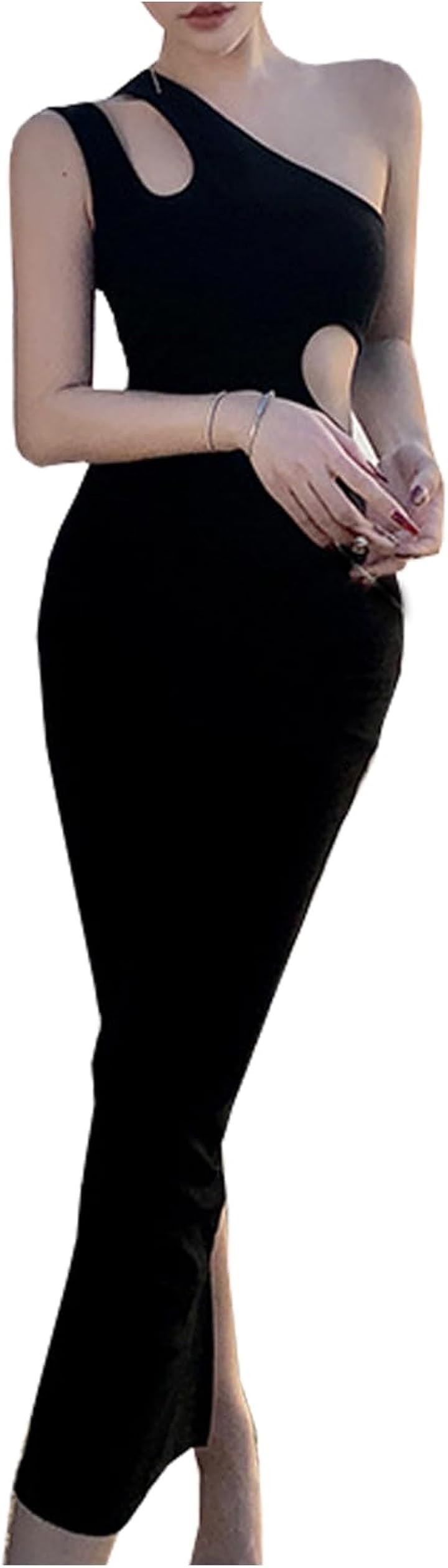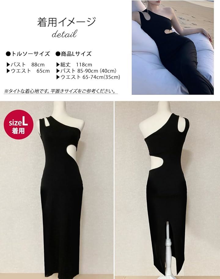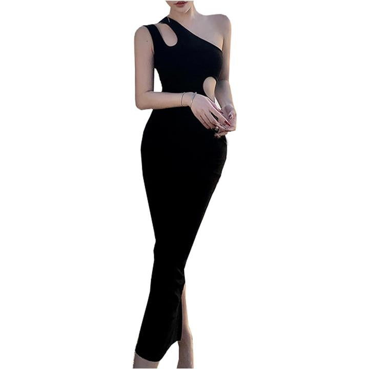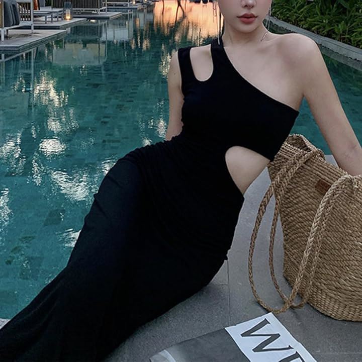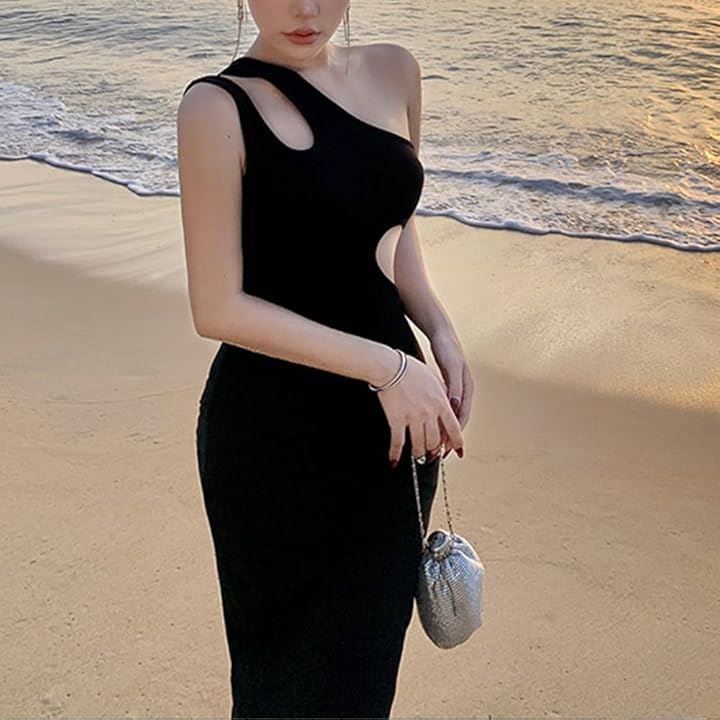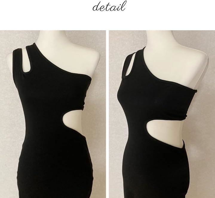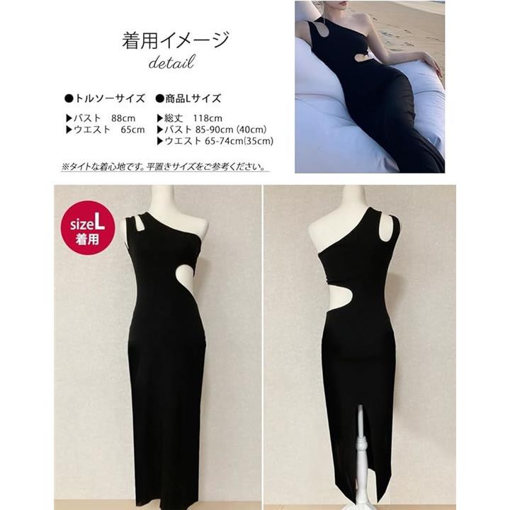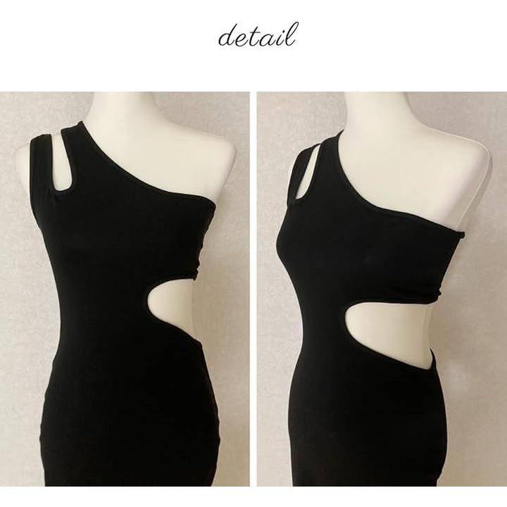 リゾートワンピース レディース 夏 タイト ワンショルダー ドレス カットアウト スリット 黒 シンプル セクシー ロングドレス ミモレ丈