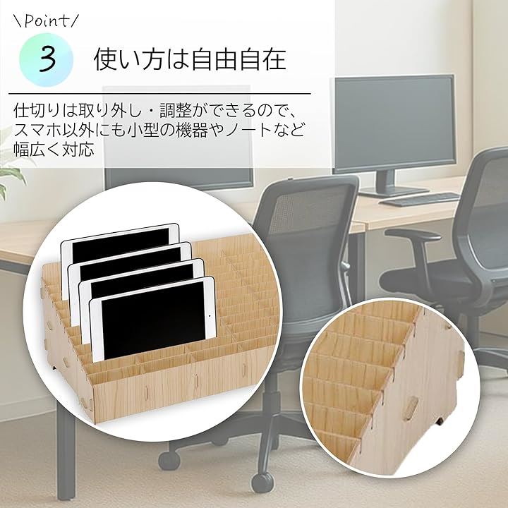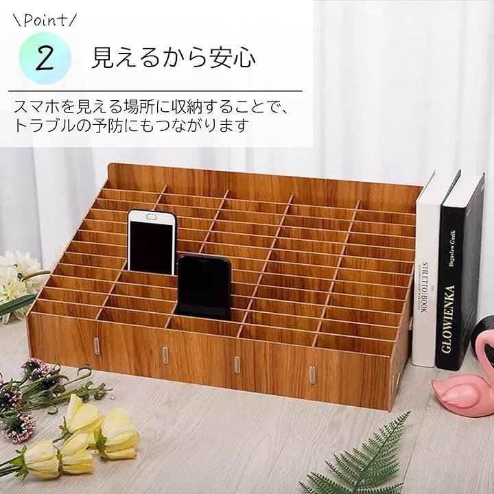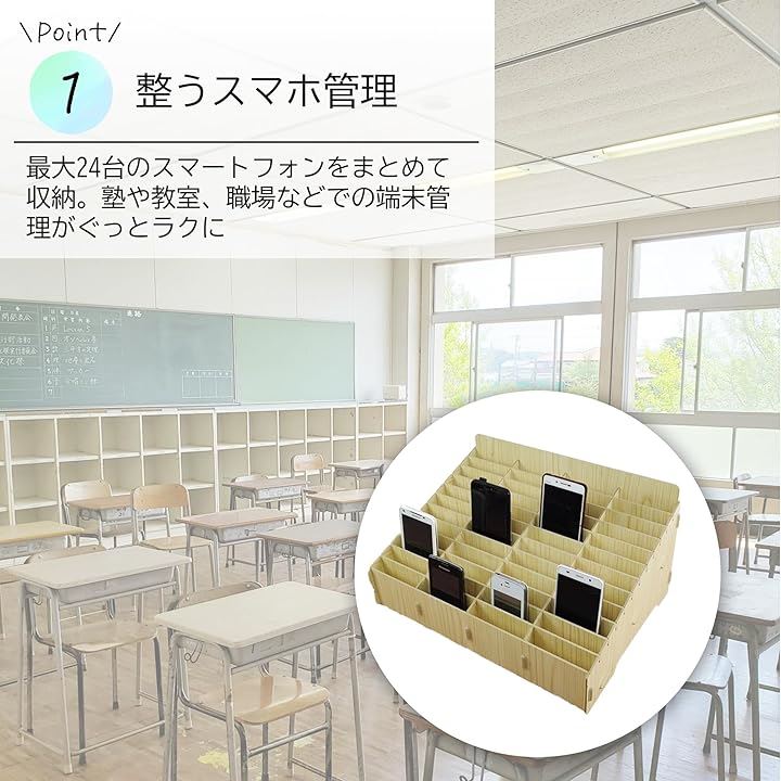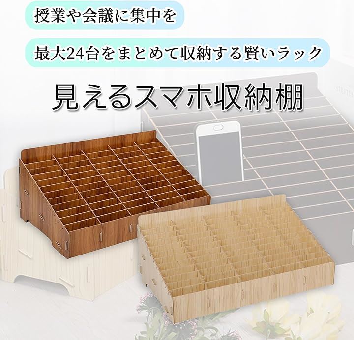 スマホ収納ラック 携帯端末管理 スマホスタンド 収納ボックス 教室用 木製 仕切り調整 簡単組み立て 整理整頓 卓上収納 見える収納 多目的収納 オフィス用品