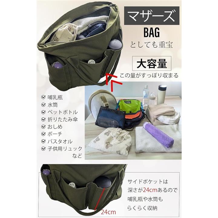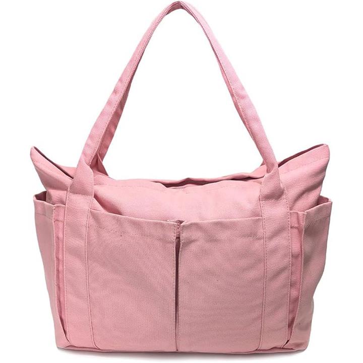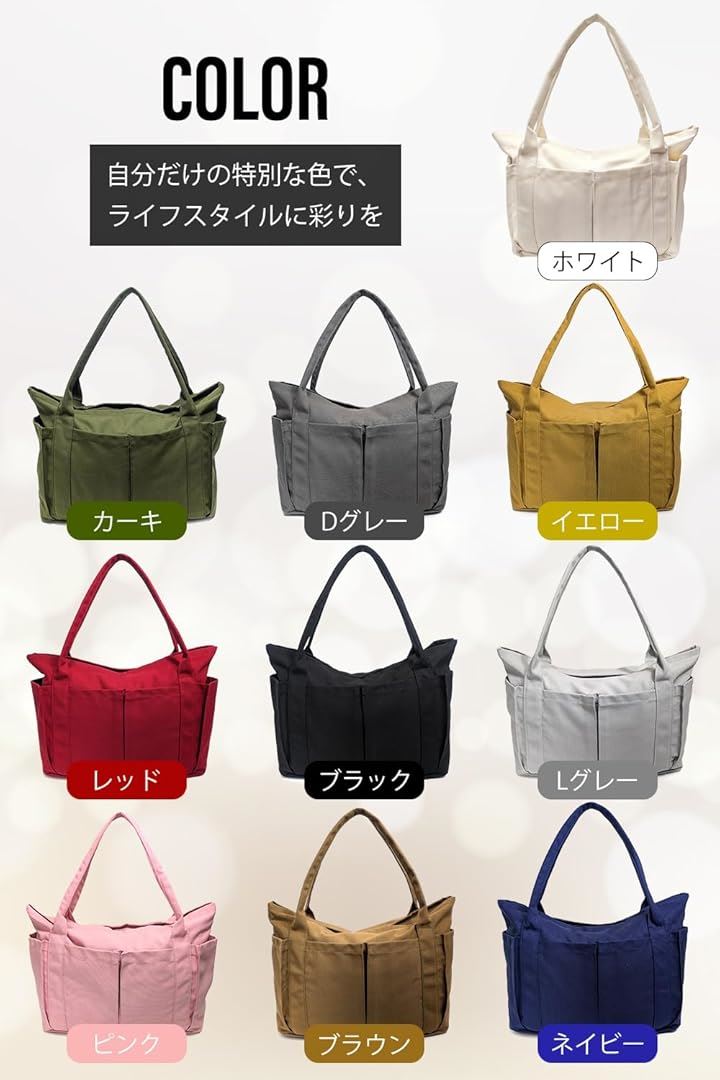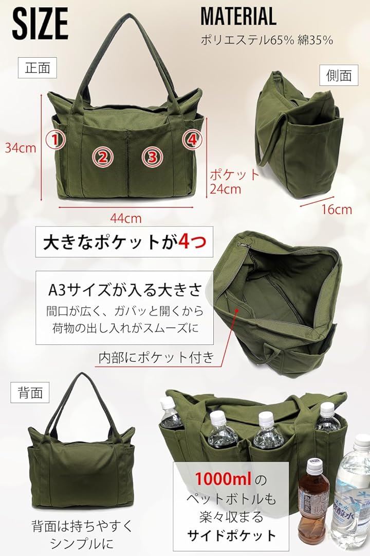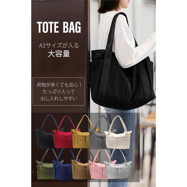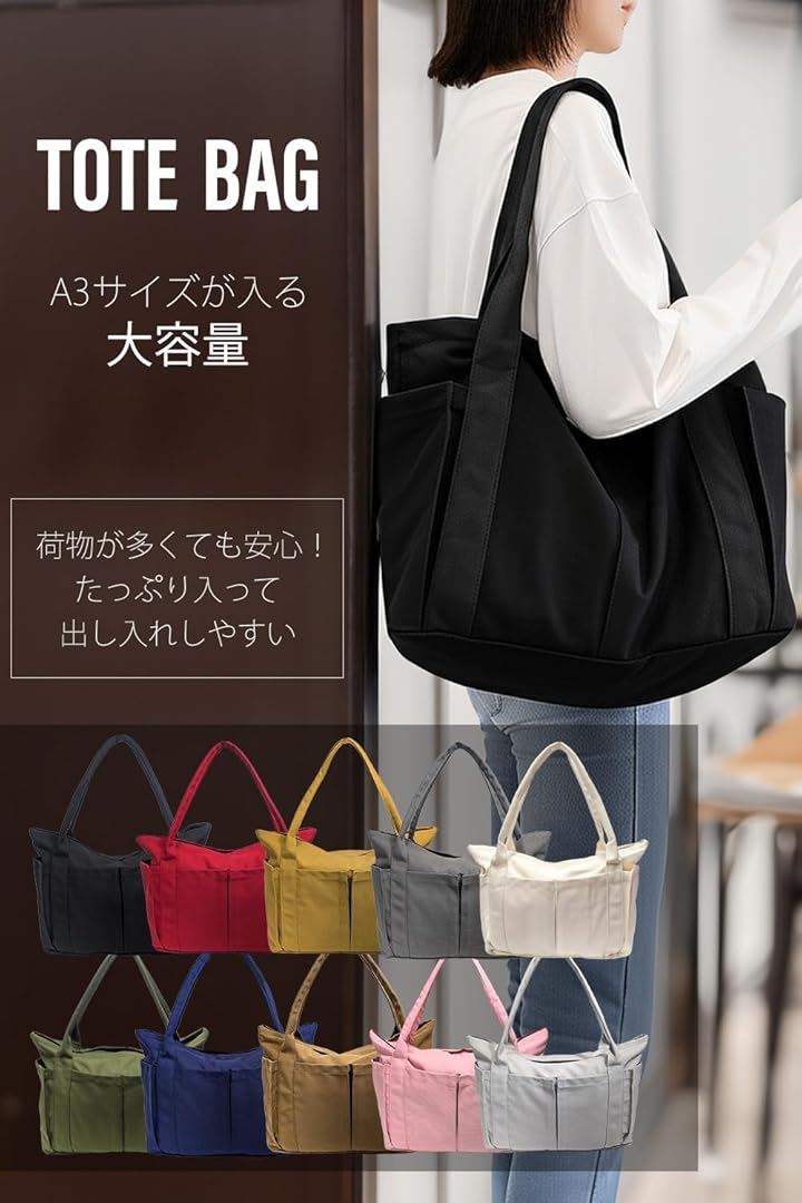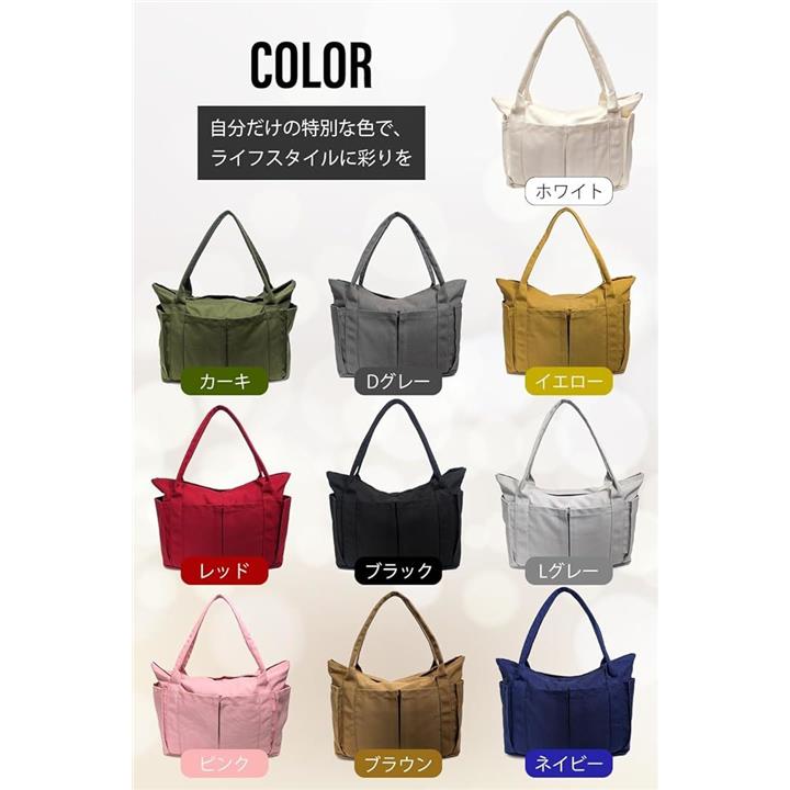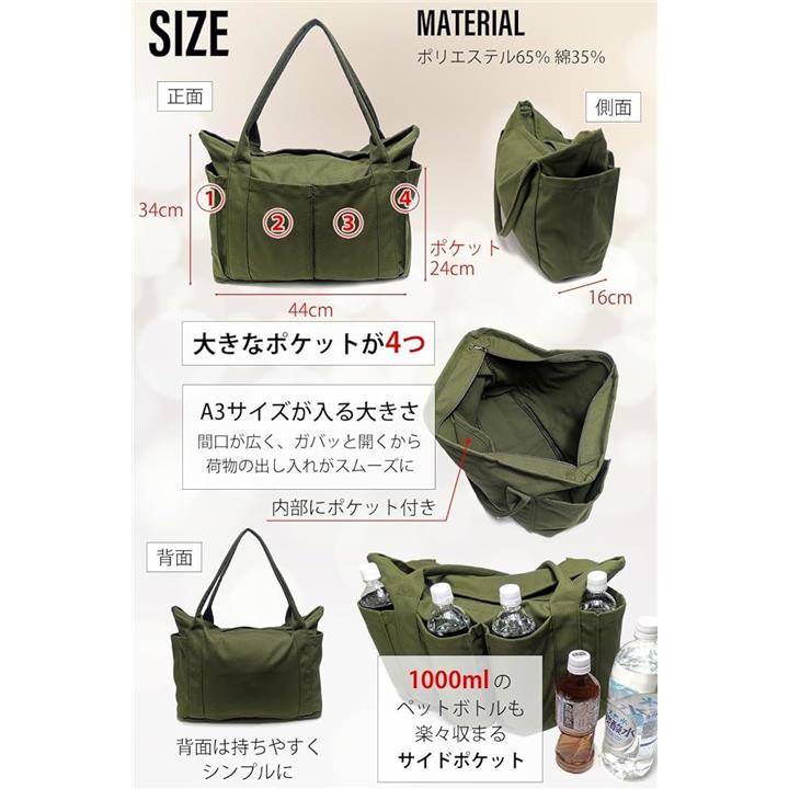 大容量 トートバッグ 2way キャンバス 無地 外ポケット レディース