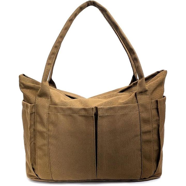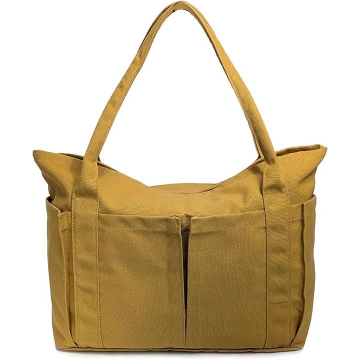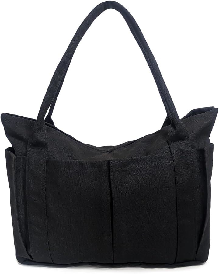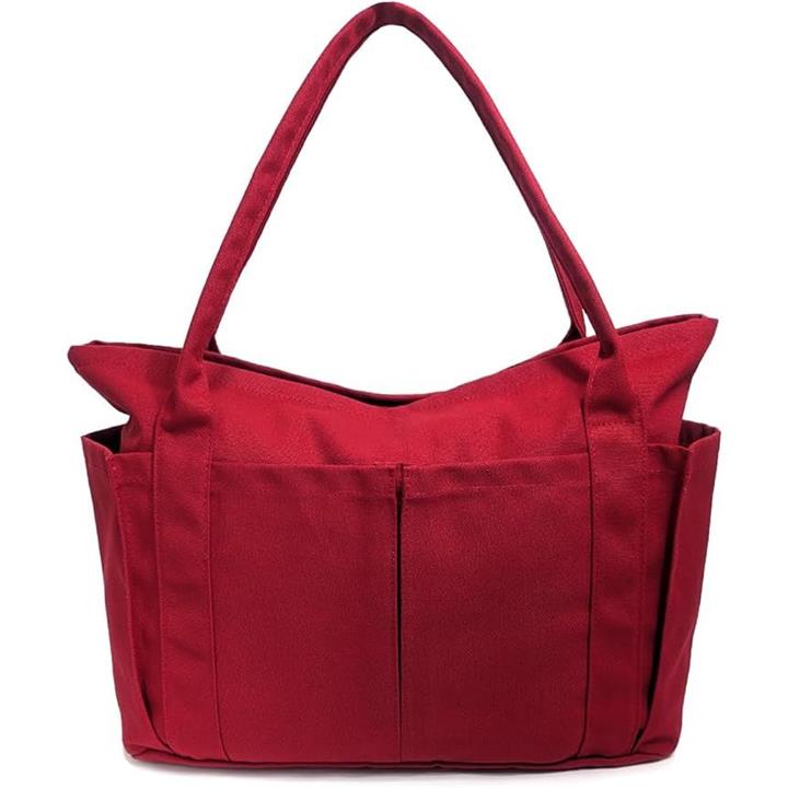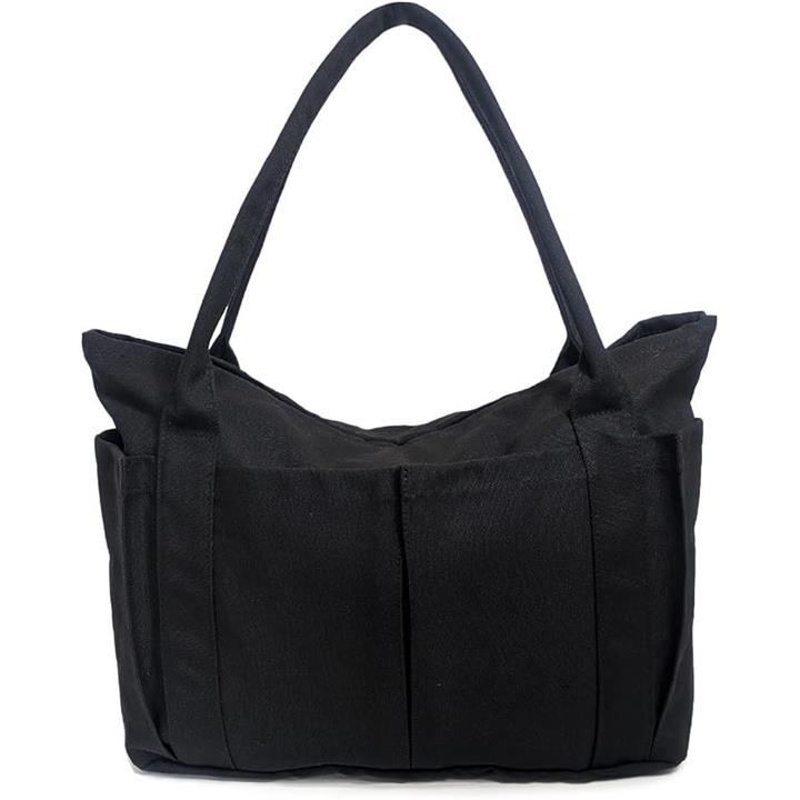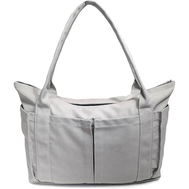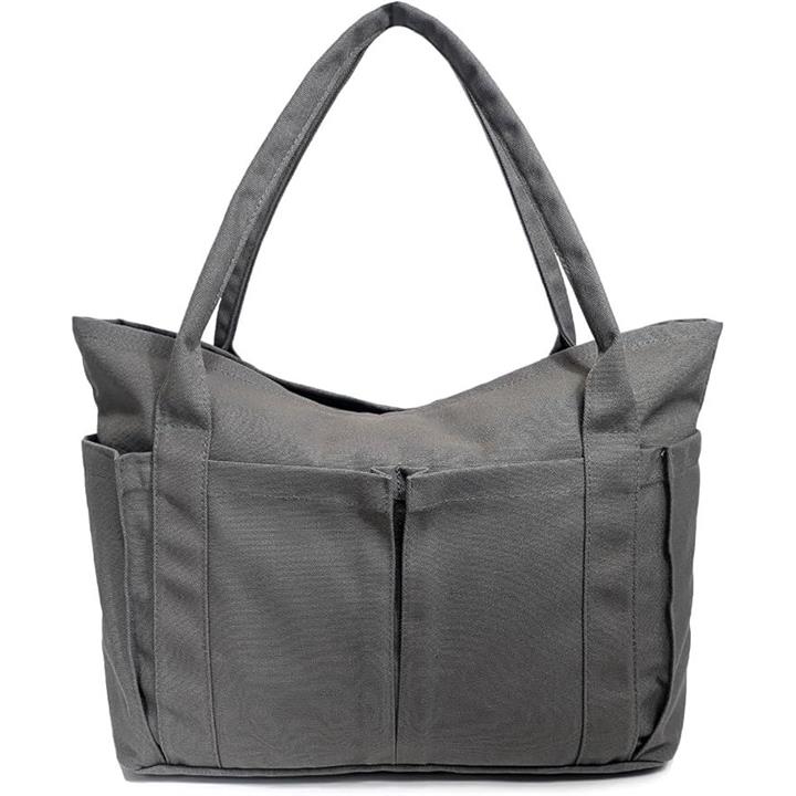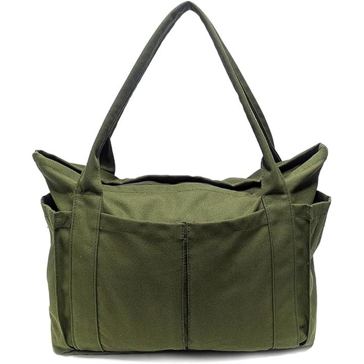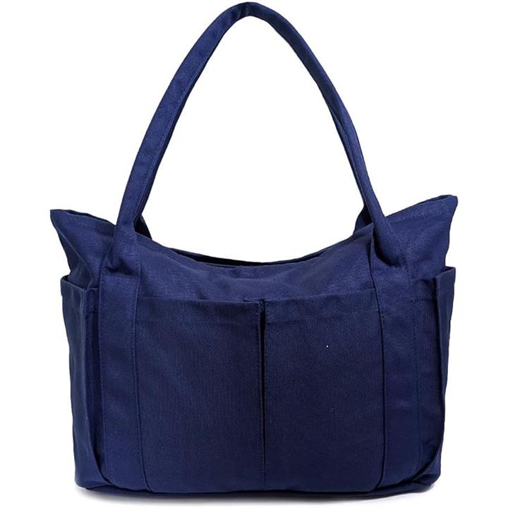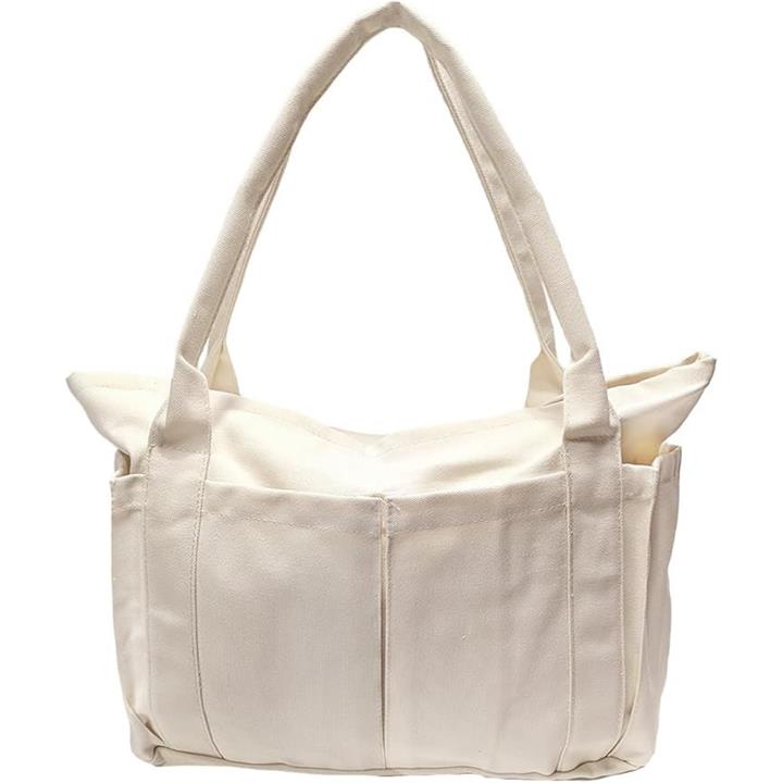 大容量 トートバッグ 2way キャンバス 無地 外ポケット レディース