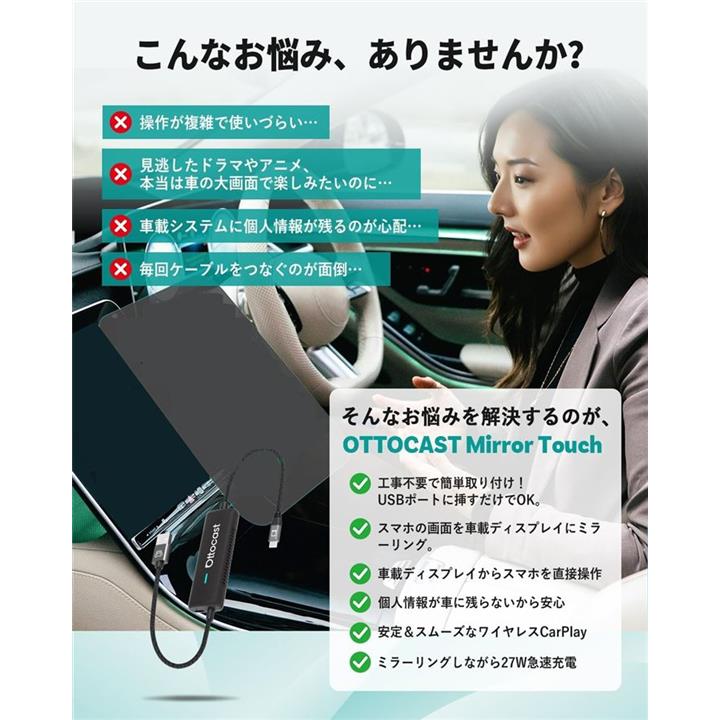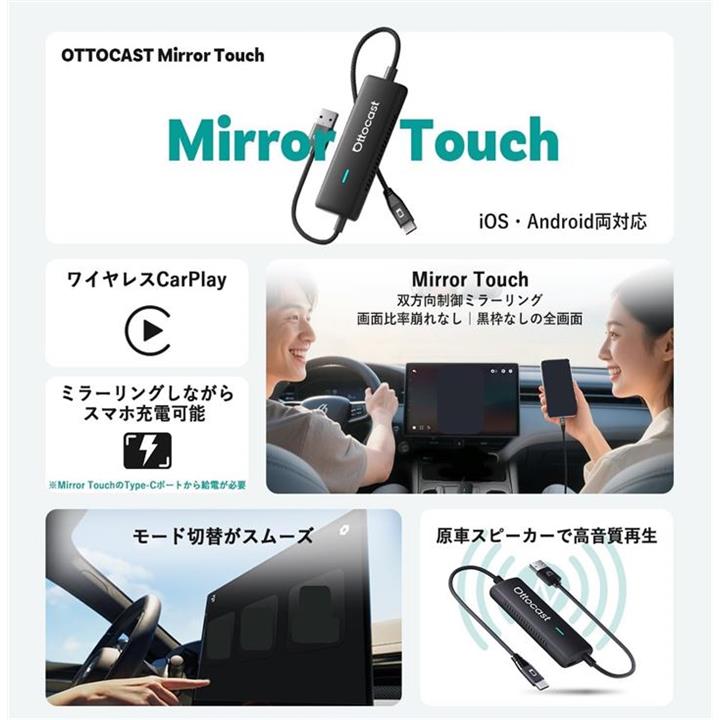 オットキャスト 公式 Mirror Touch ミラーリング スマホを大画面に映す 双方向ミラーリング ワイヤレスCarPlay 技適取得済み品