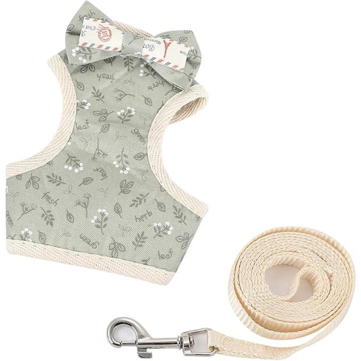 Uccellino リボン うさぎ ハーネス 通気性 長さ調整可 リード 簡単装着 ウサギ用ハーネス