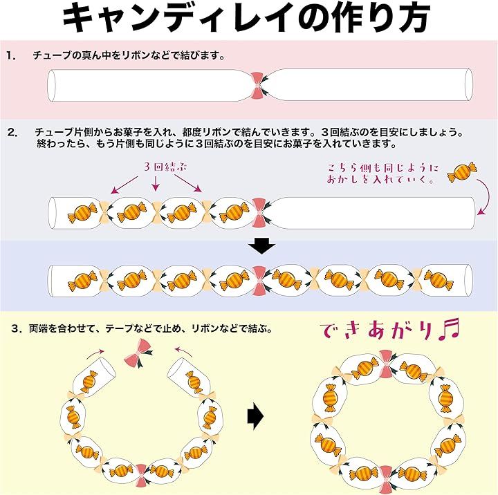 作る楽しさ、贈る喜び、受け取る感動が詰まったキャンディレイ用チューブ袋は、特別な日のサプライズやリワード、日常のちょっとしたご褒美にもぴったりのアイテムです。