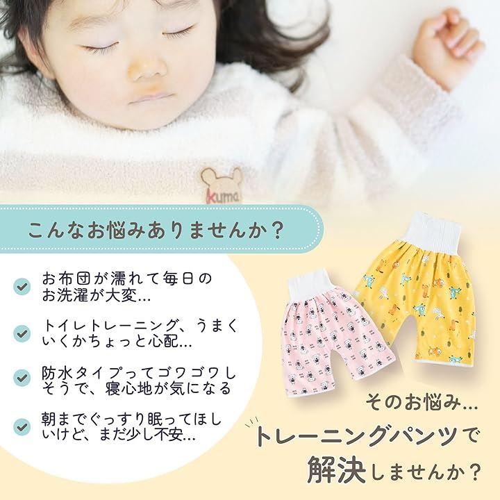 トレーニング パンツ おねしょ ズボン 2枚 セット 綿 腹巻 寝冷え 対策 防水 通気 ベビー