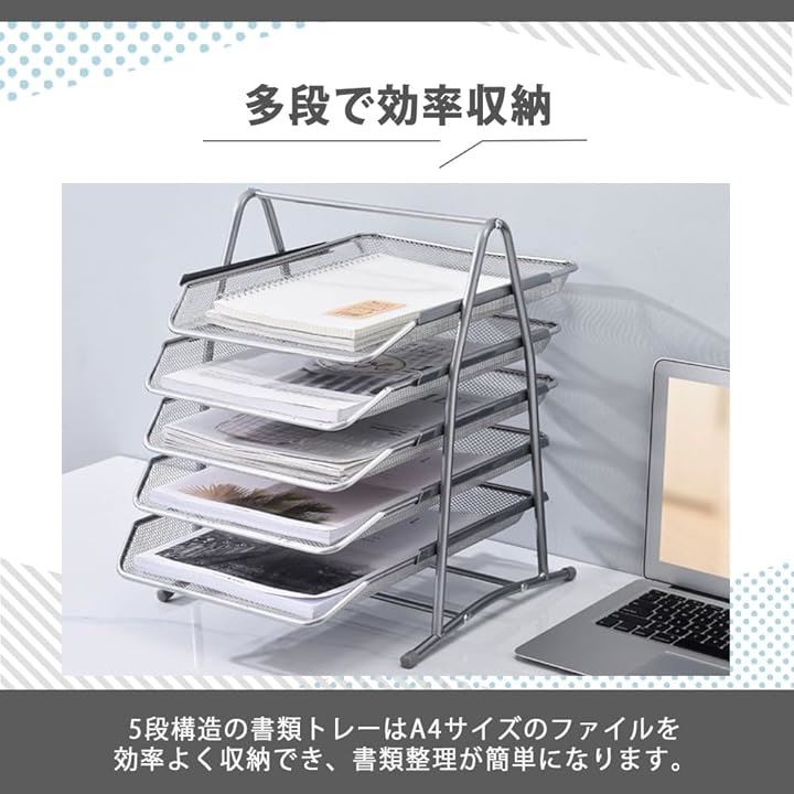 書類トレー デスク周り レターケース a4 5段 縦置き 卓上収納ラック 書類整理 金属製 A4ファイル 事務所 在宅勤務