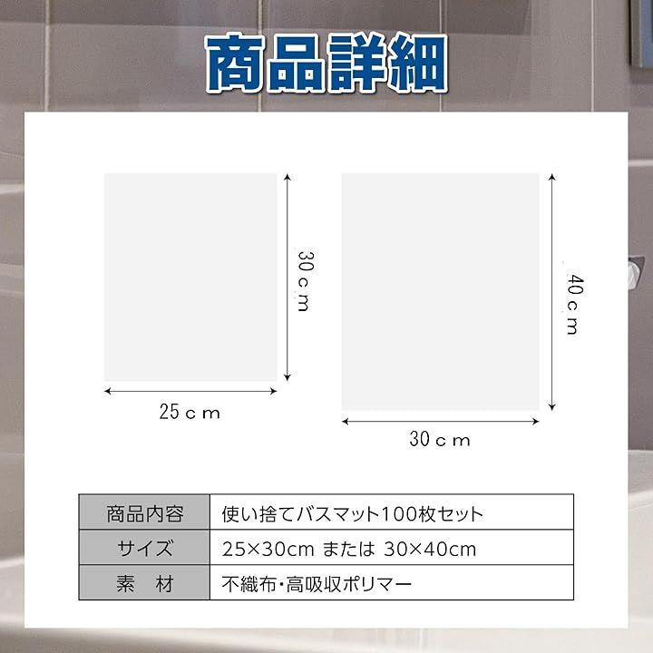 バスマット 使い捨て 100枚セット 吸水 ポリマー 薄型シート 拭き取り