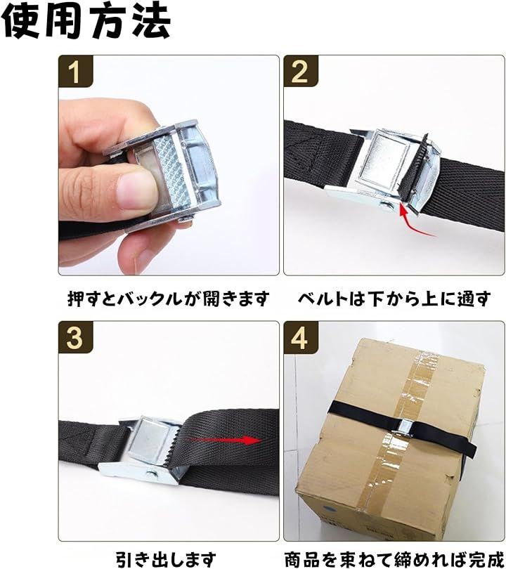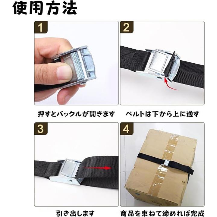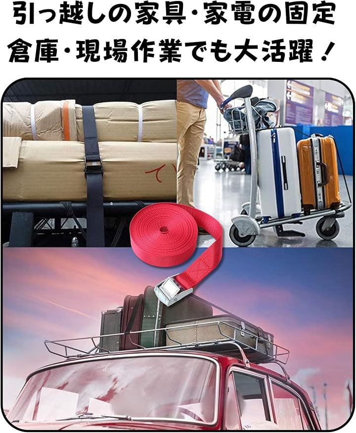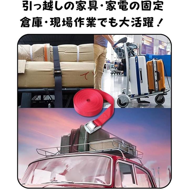 荷締めベルト 固定ベルト 荷物固定用 トラック・車載・引越し用 バイク・カート・トラック用 荷物固定ベルト