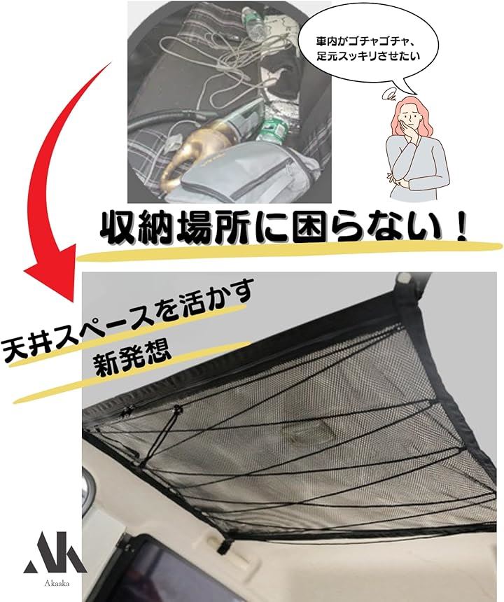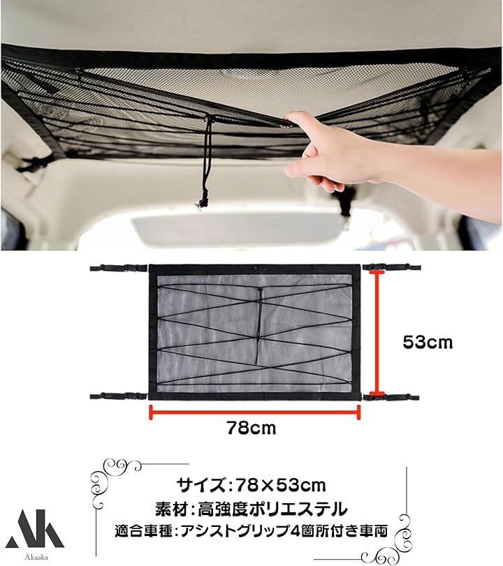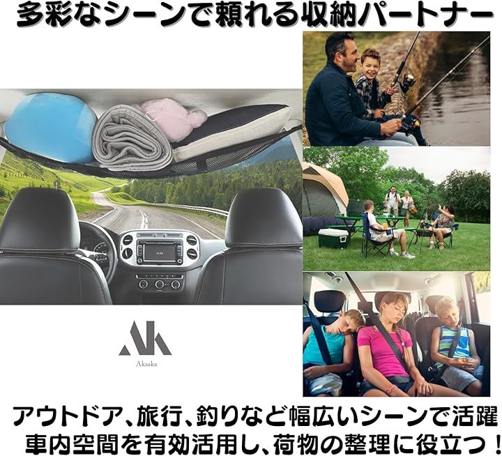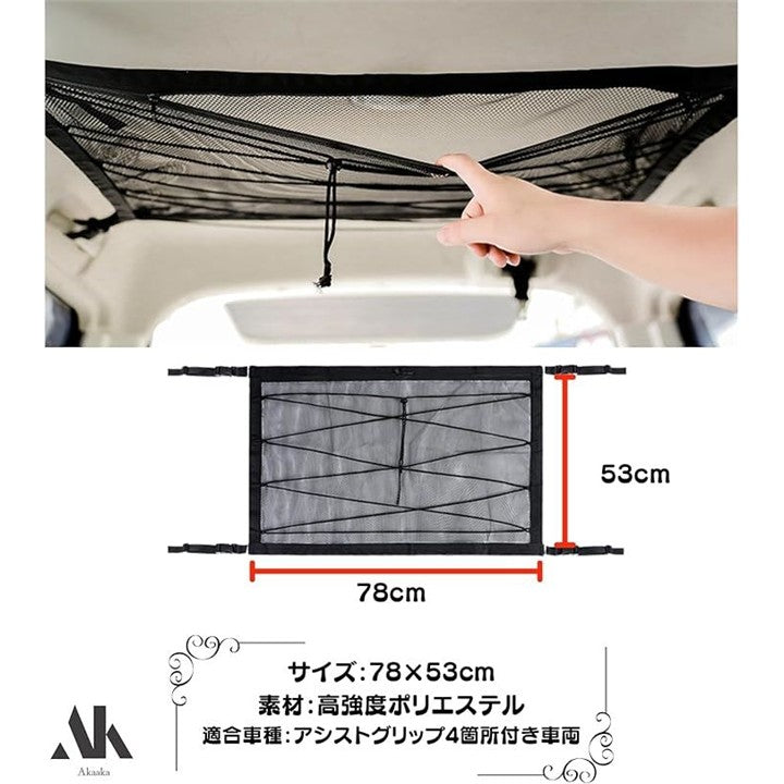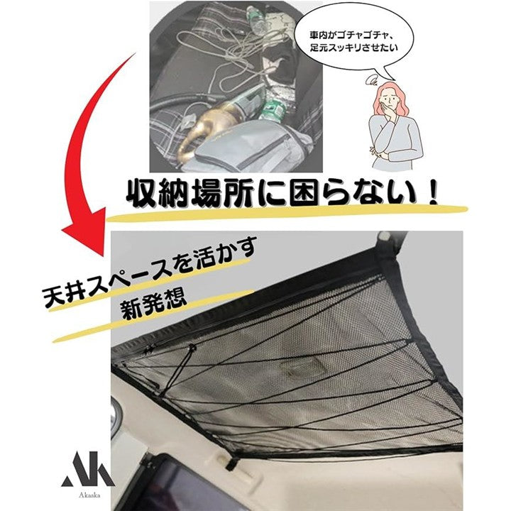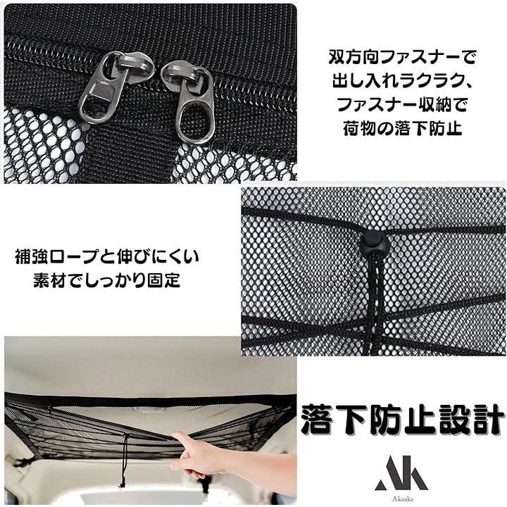 車 天井収納ネット ルーフネット メッシュ ラゲッジ 荷物落下防止 車中泊 軽自動車 コンパクトカー対応