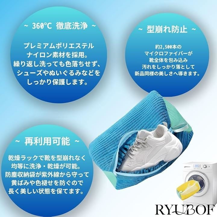 靴洗いネット 2個セット シューズ洗濯ネット 型崩れ防止 洗濯機対応 靴用ネット 洗濯ネット付き シューズハンガー 不織布バッグ付 黄ばみ防止 靴クリーナー