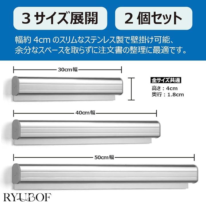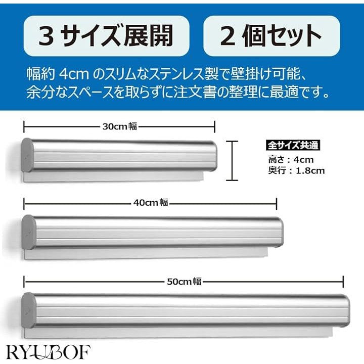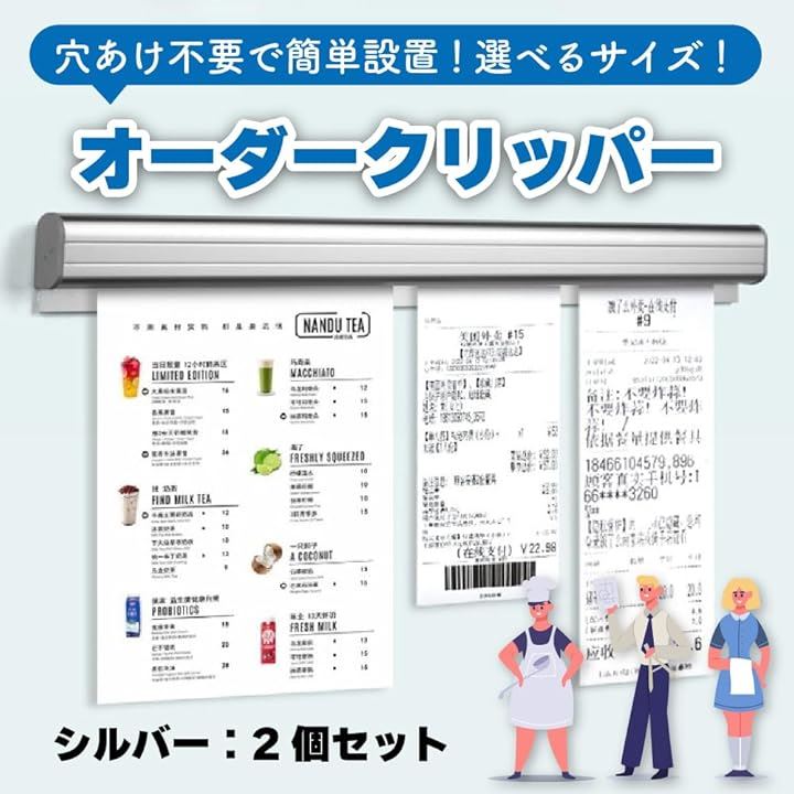 オーダークリッパー 伝票ホルダー 穴あけ不要 伝票差し 壁掛けクリップ 強力両面テープ ステンレス製 スリムタイプ 2個セット レシートクリップ 注文書整理 オフィス