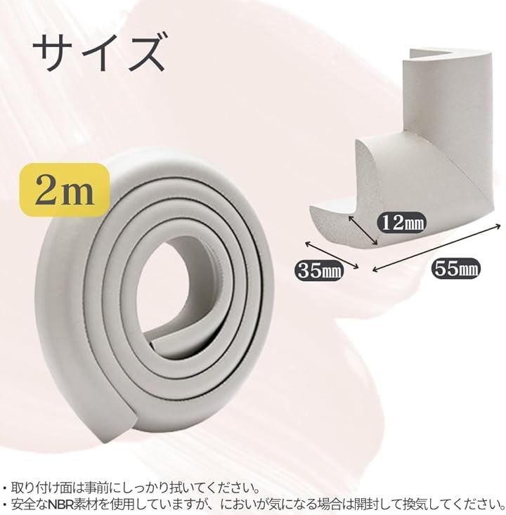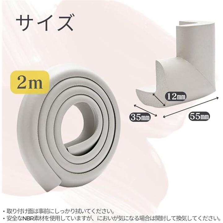 コーナーガード 2m+角用4個 クッション 赤ちゃん 強力両面テープ 極厚 衝撃吸収