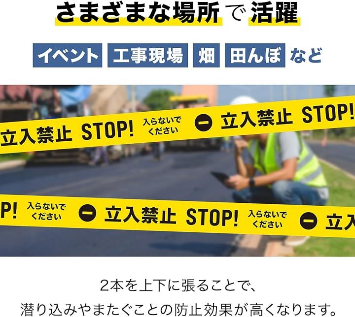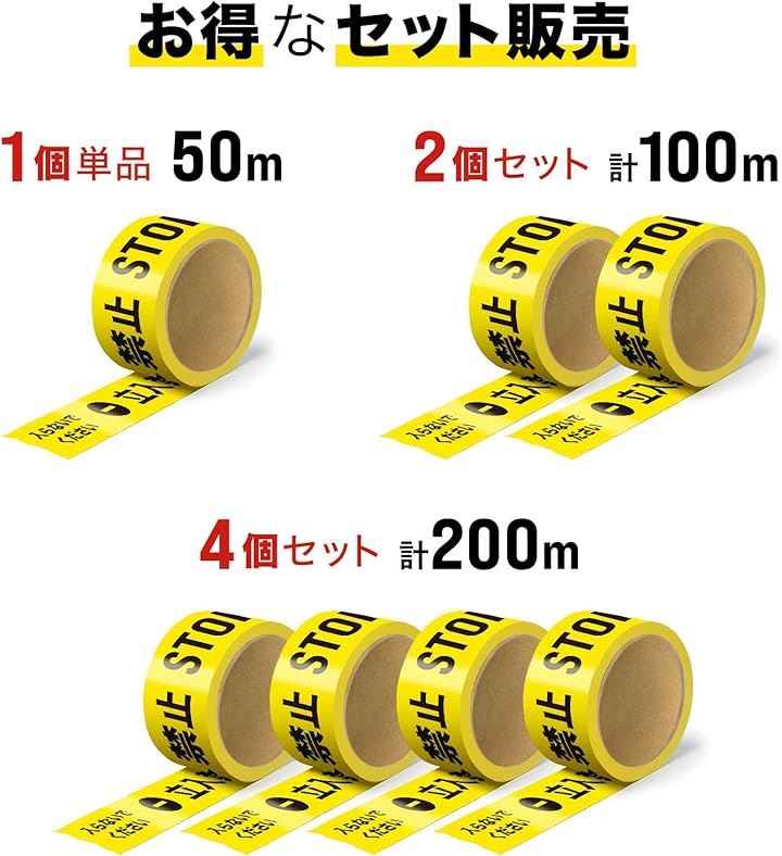 立入禁止テープ 危険表示 警告 安全標識 バリケードテープ 非粘着性PE