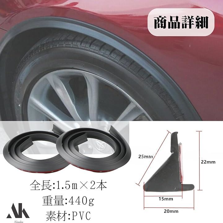フェンダーモール オーバーフェンダー アーチ 車 汎用 簡単装着 ドレスアップ 外装 カスタム 1.5m 2本セット