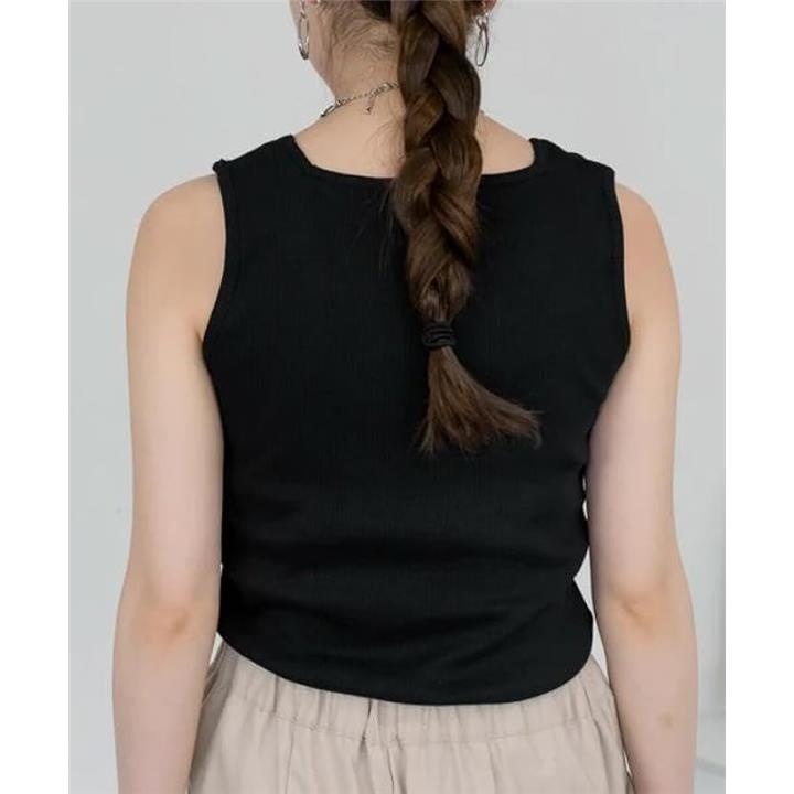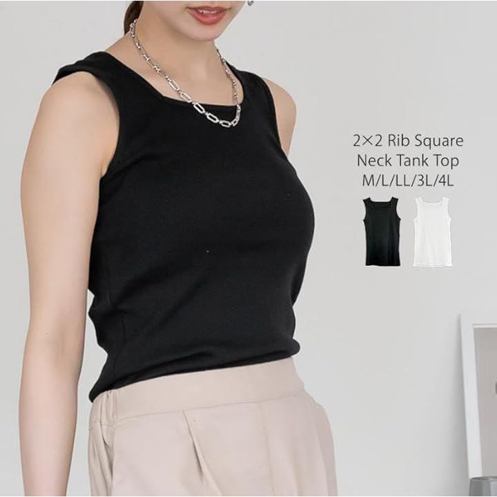 [エンプティオ] リブ タンクトップ スクエアネック 透けない ブラ紐隠し チラ見え レディース デコルテ ダンス フィットネス 部屋着 ジム パジャマ ノースリーブ トップス 体型カバー |