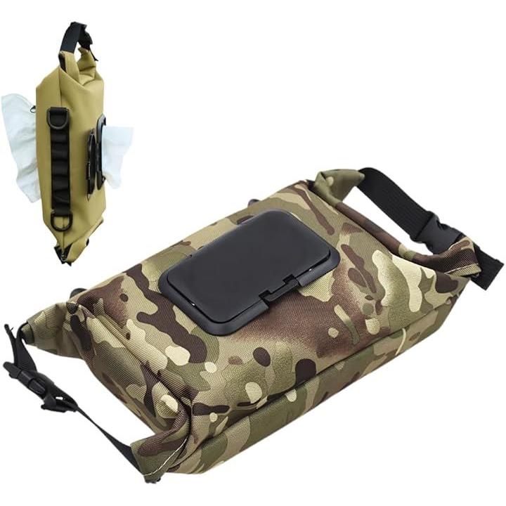 ウェットティッシュケース ポケットティッシュ ホルダー 2in1 乾湿両用ひとまとめ 両方 持ち運び 携帯 車 アウトドア キャンプ 2種類 収納 多機能 ポーチ ベルト付き