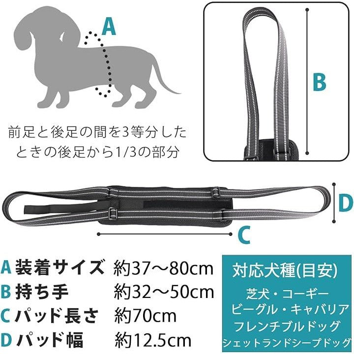 犬用 ハーネス 中型犬用 歩行補助 介護 リハビリ 後ろ足サポート メッシュ 通気性 洗える 反射素材付き 簡単装着
