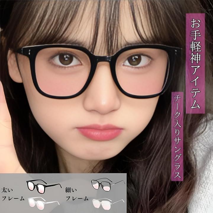 チーク 偏光サングラス 韓国風 時短アイテム 伊達メガネ レディース 小顔 ラウンド型 フェイスライン補正 色付きレンズ 血色感アップ おしゃれ