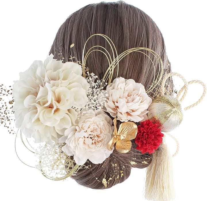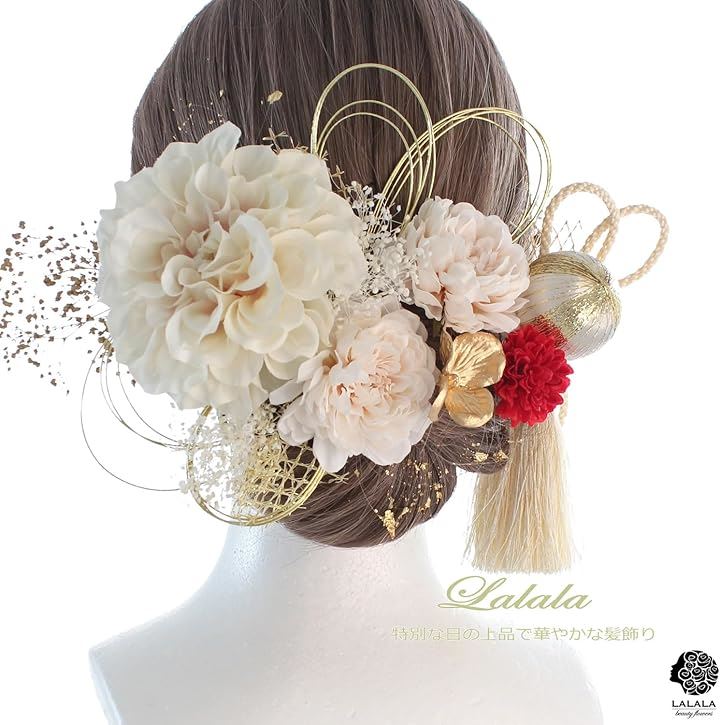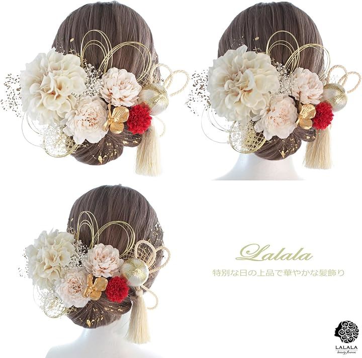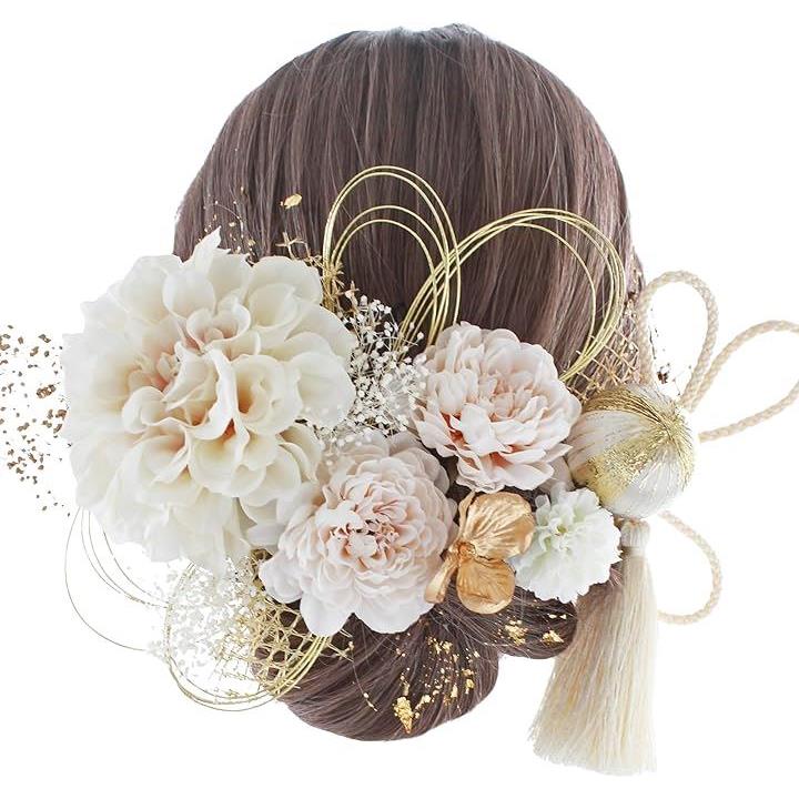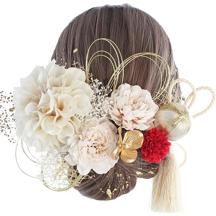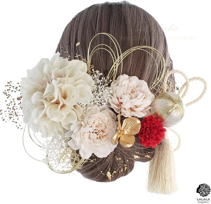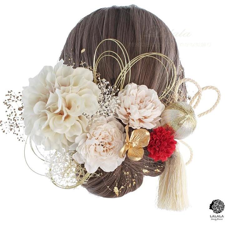 [LALALA beauty flowers] 成人式・卒業式にぴったりの華やか髪飾り 和装小物 七五三 結婚式 入学式 花火大会 浴衣 着物 袴 振袖 二十歳の集い (ホワイト) 3150LL |