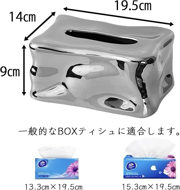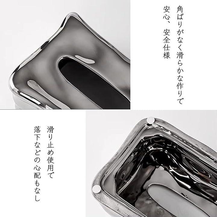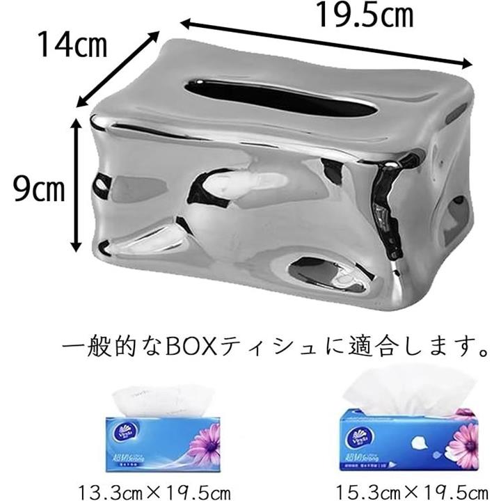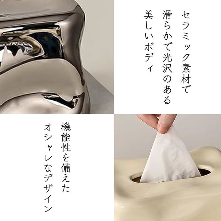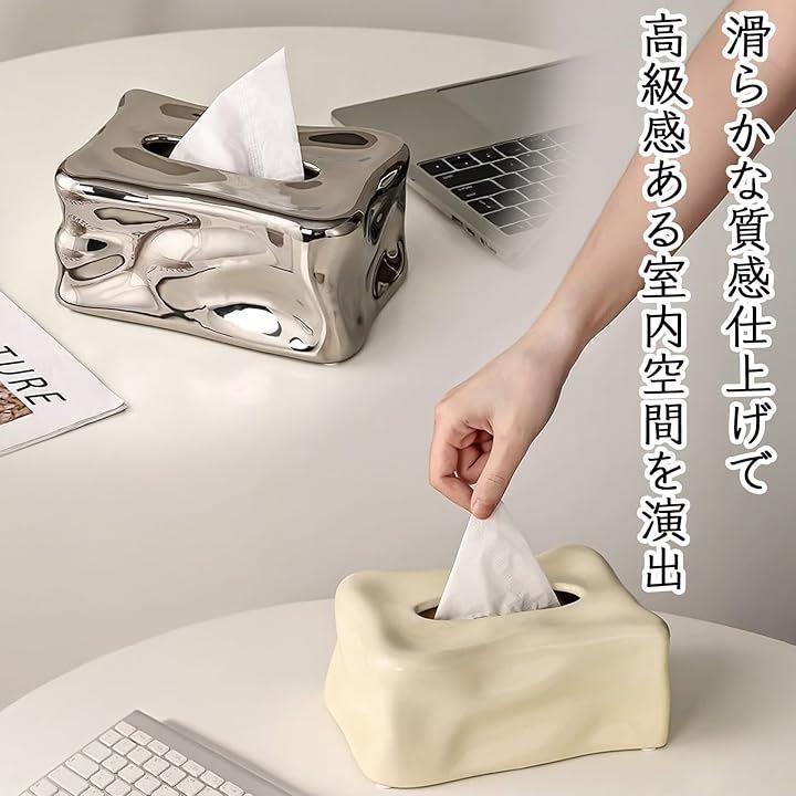 韓国インテリア 陶器ティッシュケース シルバー オフホワイト 19.5x14x9cm カフェ風