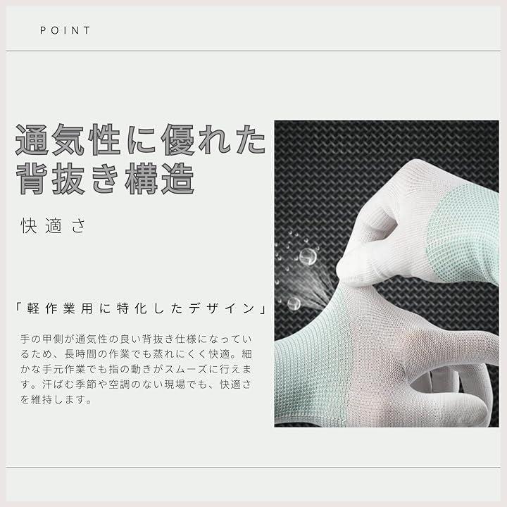 背抜き手袋 作業用 静電気防止手袋 12組 24枚 薄手 白手袋 軽作業 指先PU加工