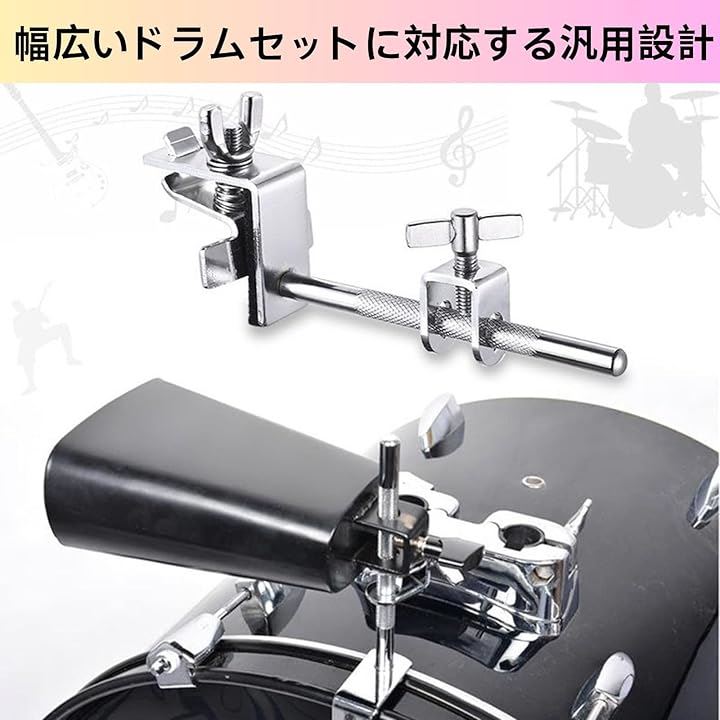 HOTQ カウベル ホルダー フープマウント パーカッション 楽器 ドラムパーツ 調整可 固定クリップ