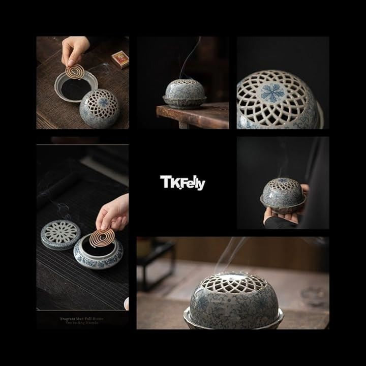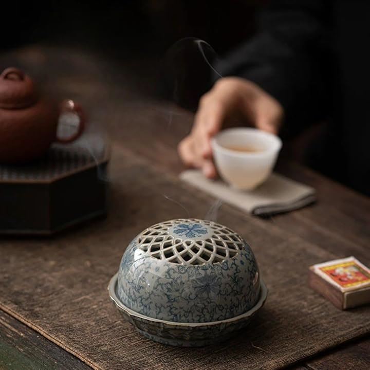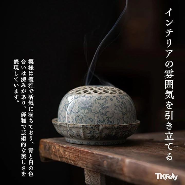陶器香炉 丸 おこうたて 香立て 古陶香炉 線香立て ホーム香 仏具 青花盤 古陶泥 渦巻きお香立て