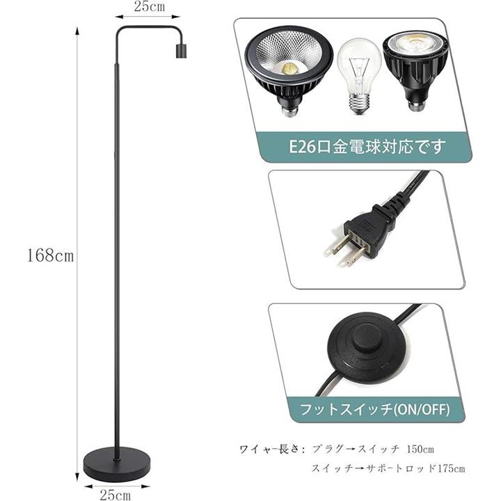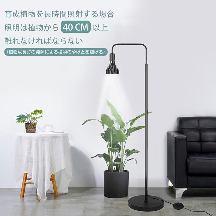 植物育成向けフロアスタンド 四段階調節高さ 各セグメント支持棒37.5 cm ソケット口金サイズE26 フットスイッチ