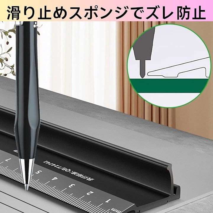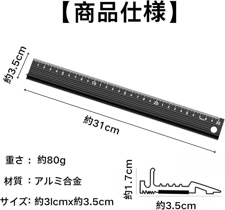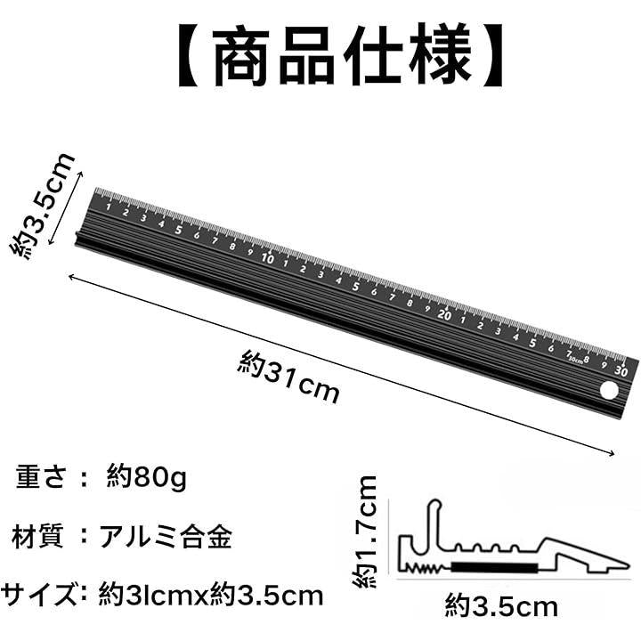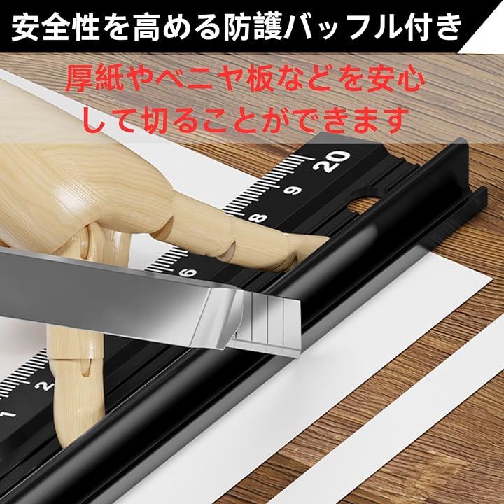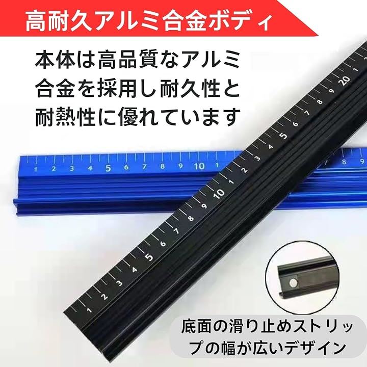 HOTQ カッター定規 曲尺 アルミ定規 ものさし 金属じょうぎ カッター用 滑り止め 持ち手付き