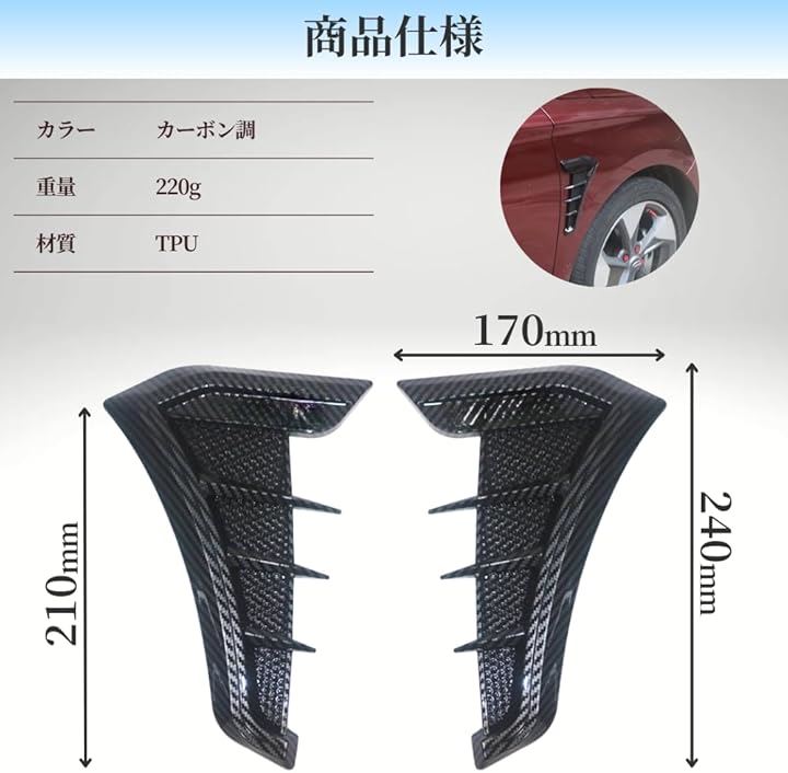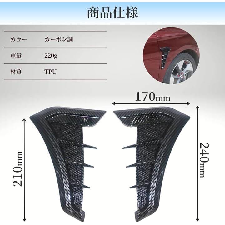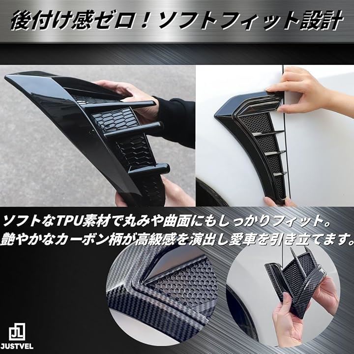 ダミーダクト フロントフェンダー サイド カーボン柄 左右2個セット 貼るだけ改造 やわらか素材 フェンダーダクト 汎用 車 カスタム