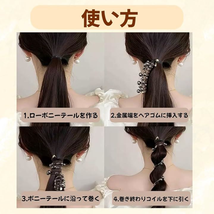 ヘアゴム ヘアアクセサリー コイルポニー パール ワイヤーポニー 電話コード型 髪ゴム おしゃれ 可愛い 跡がつかない スプリングヘアゴム 髪飾り