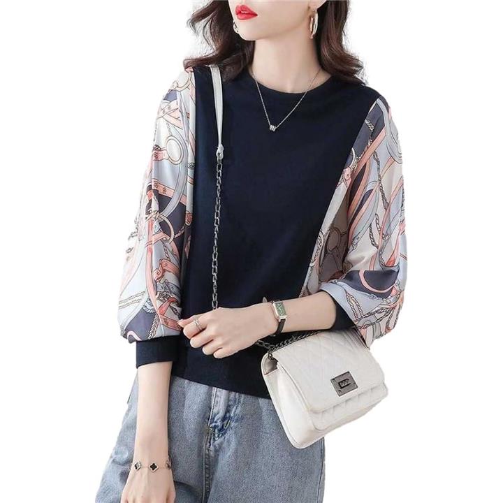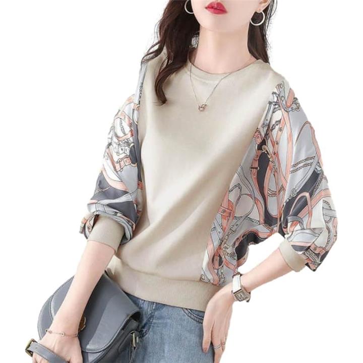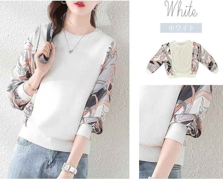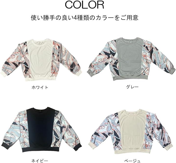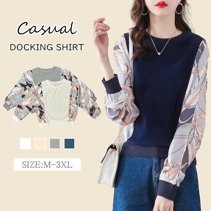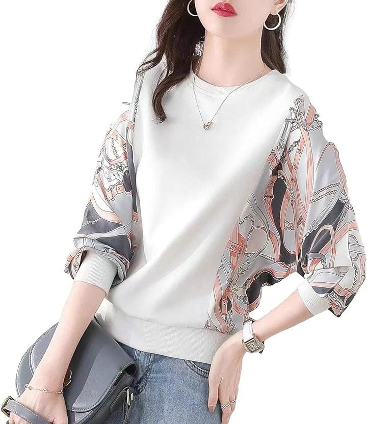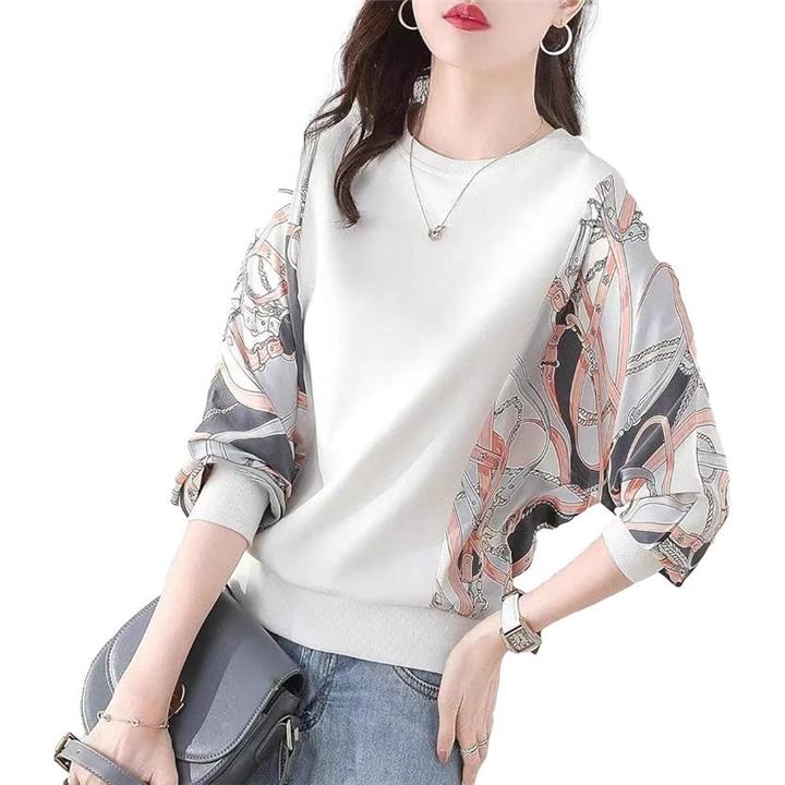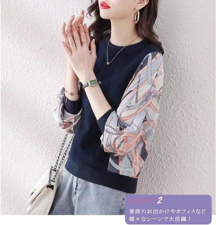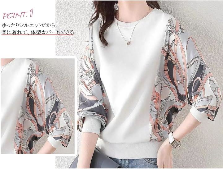 [Lopis] レディース ドッキングシャツ ブラウス 長袖 ドルマンスリーブ スカーフ柄 フェミニン きれいめ エレガント 着痩せ かわいい |