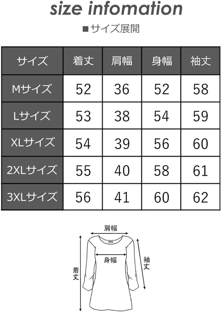 「3XL」着丈56/肩幅41/身幅60/袖丈62