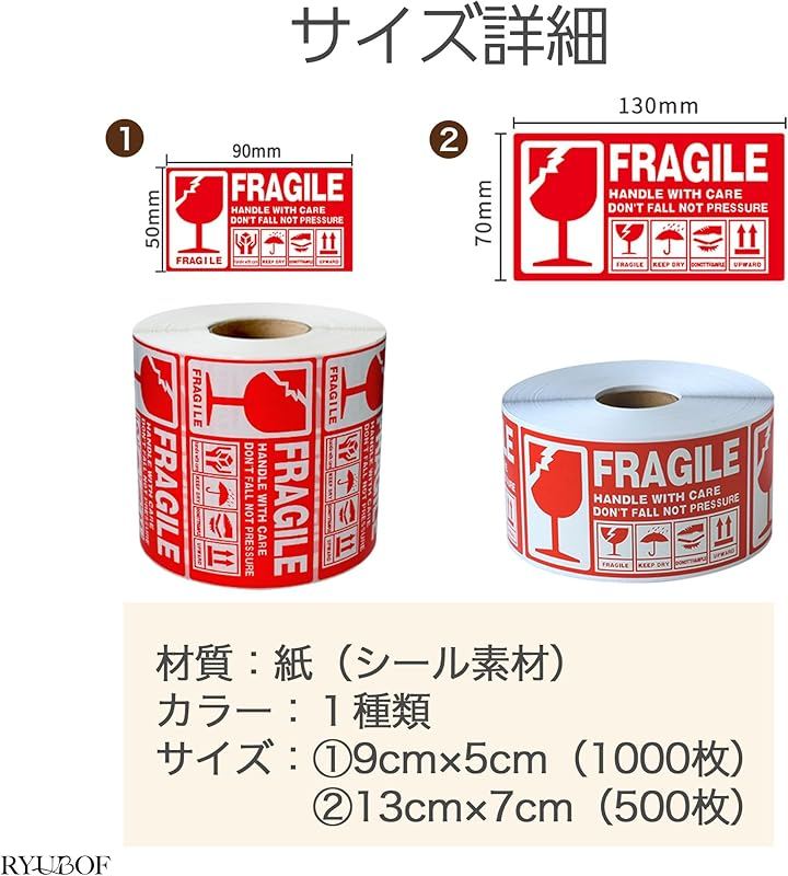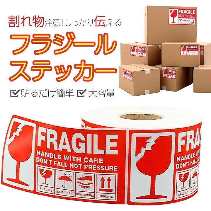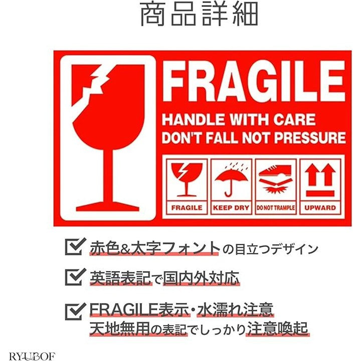 フラジール ステッカー 割れ物注意 シール ラベル 取扱注意 荷物用 スーツケース用 警告シール 英語表記 大容量 国内海外対応