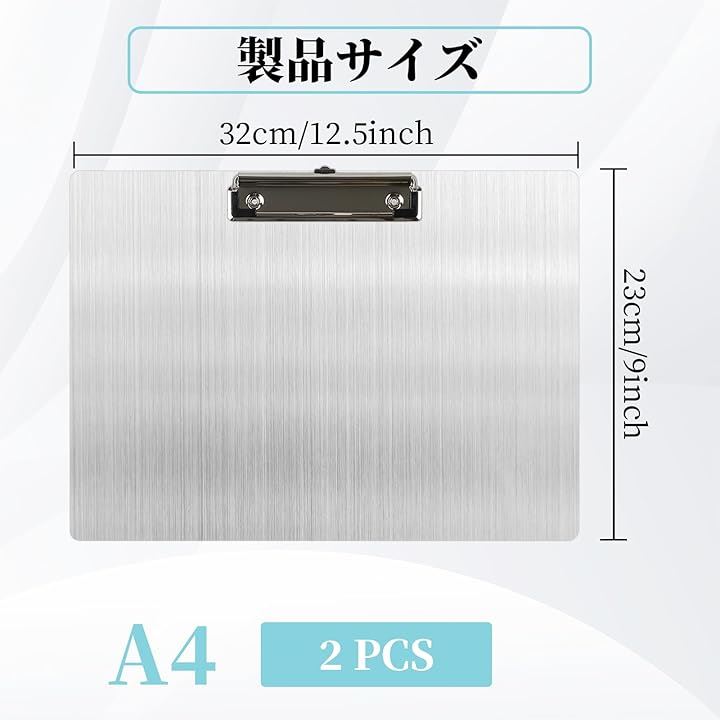 クリップボード 2枚入り 32x23cm 横型 クリップファイル ワードパッド ファイルバインダー 携帯便利 アルミニウム合金