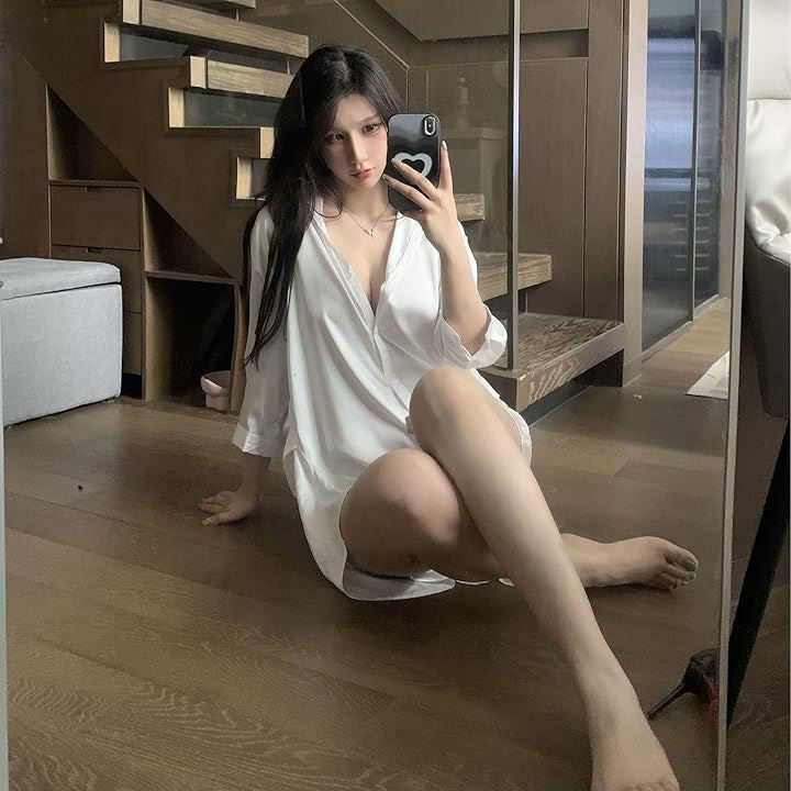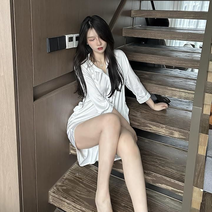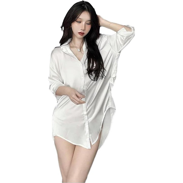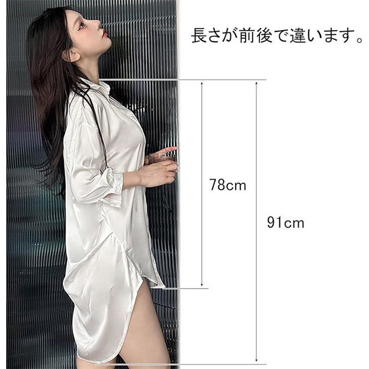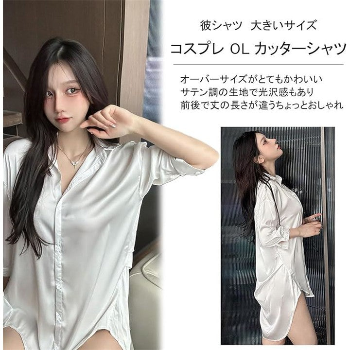 彼シャツ 大きいサイズ かわいい OL コスプレ 制服 カッターシャツ サテン