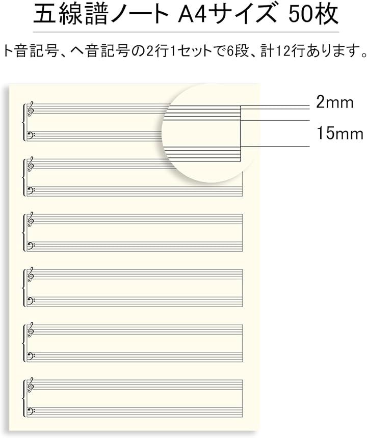 ピアノ 初心者 五線紙 五線譜 キャンパス A4 12段 楽譜 台紙 ノート