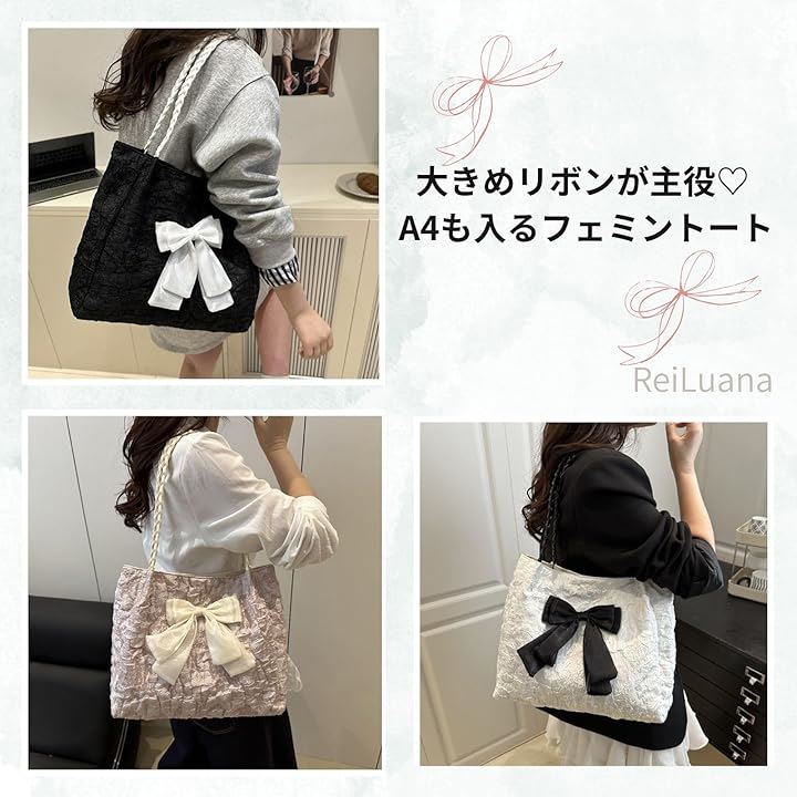 トート バッグ リボン A4 肩掛け 大容量 ファスナー ショルダー 軽量 通勤 通学 人気 可愛い おしゃれ レディース 大きめ チャック付き 防水