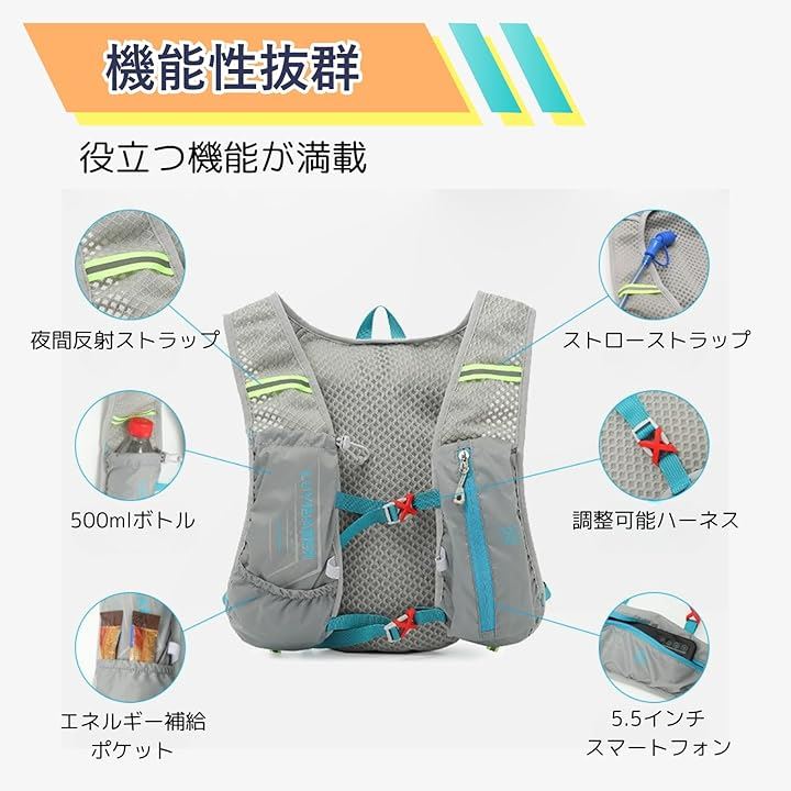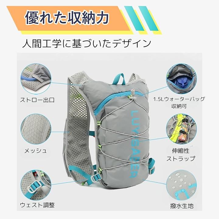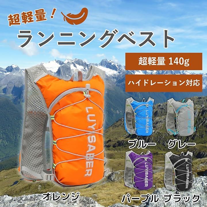 超軽量 ランニング ベスト 140g ハイドレーション 1.5L 揺れない リュック ザック トレラン サイクリング 自転車 通勤 散歩 スポーツ ジョギング