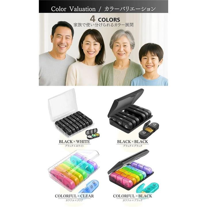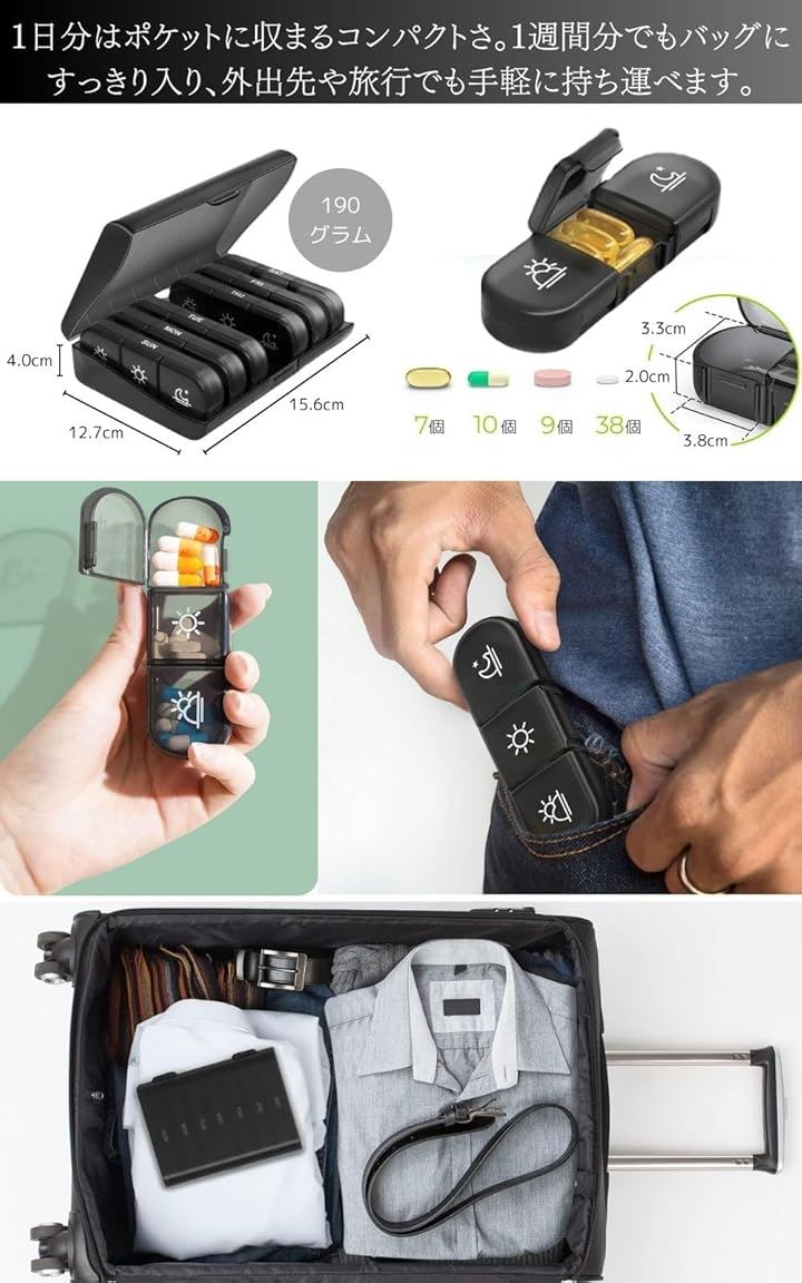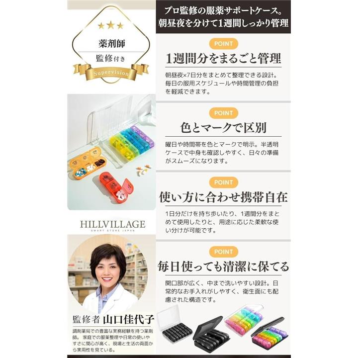 ピルケース 薬ケース 薬剤師監修&朝昼夜x7日間サポート 1週間 1日3回 サプリケース 薬入れ 薬入れケース 中身を確認しやすい半透明ケース&1日分の持ち運びも便利