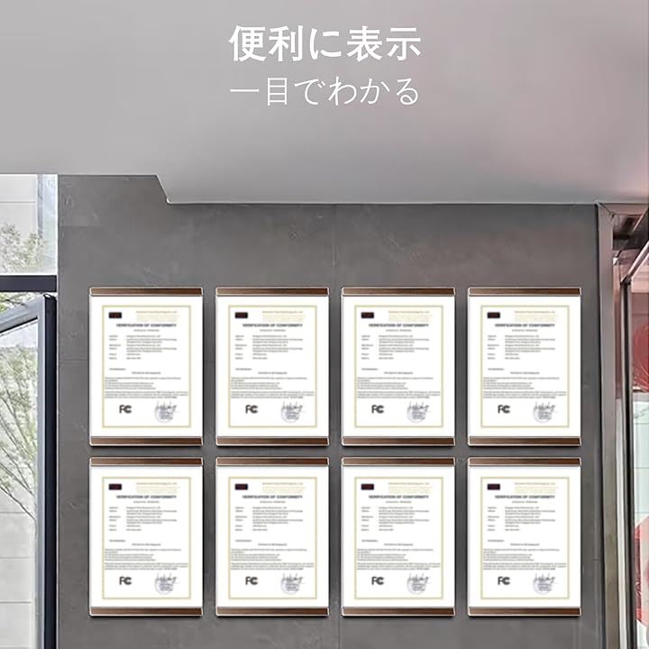 賞状額縁 5個セット A4の賞状用 壁掛け マグネット内蔵 180°開閉 アクリル ディスプレイフレーム 表彰状 入替アートパネル 褒章 樹脂製フレーム
