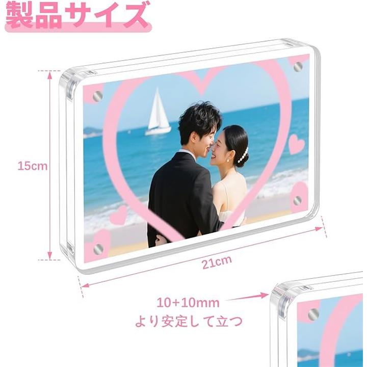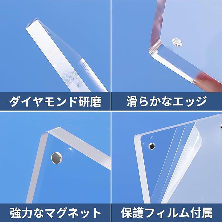 アクリルフォトフレーム 写真立て マグネットタイプ 両面透明 横&縦 強力磁石 額縁 卓上 ハガキ 賞状 ポスター展示 150mmx210mm