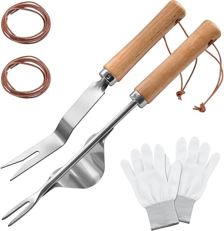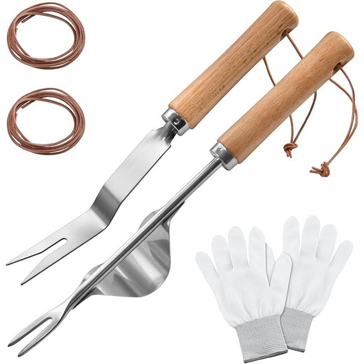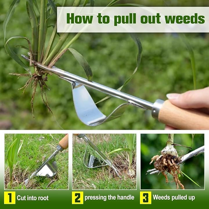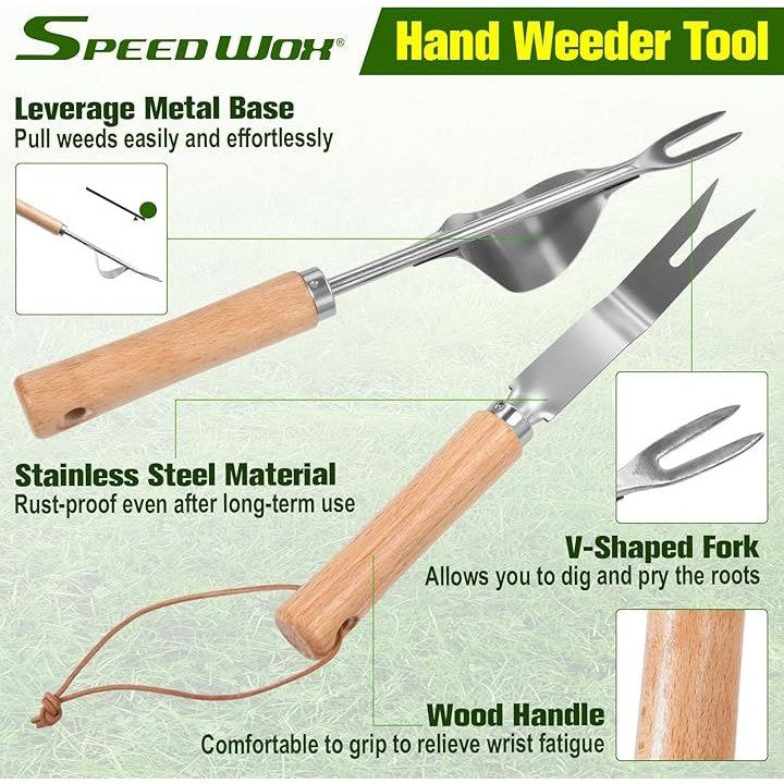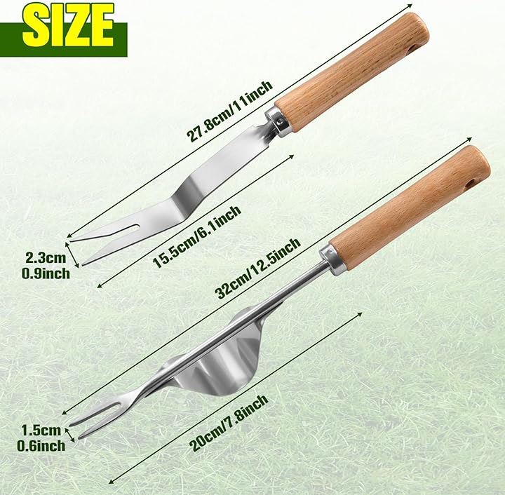 2個 手動雑草引き抜き工具 園芸手持工具 V字型雑草抜き工具 手動除草具 v字型フォーク雑草除去ツール 雑草を抜く 牛革ロープで引き手ツールを雑草