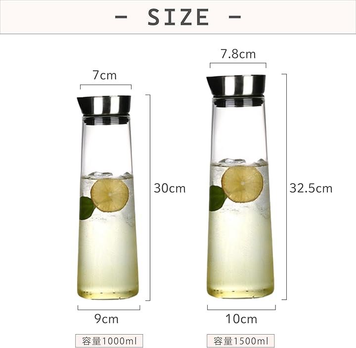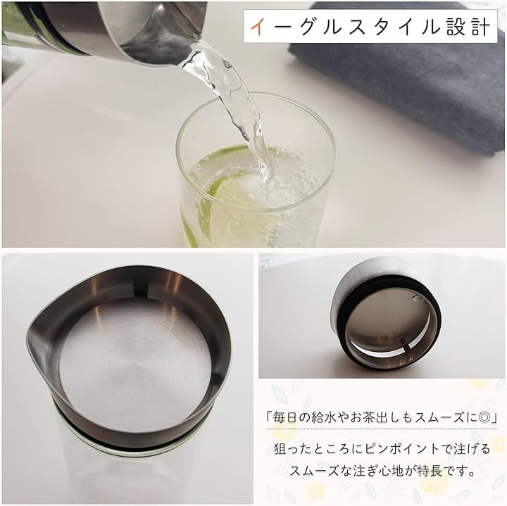 耐熱ガラス ピッチャー ウォータージャグ 食品衛生法適合 飲料ポット 注ぎ口付き容器 飲み物用容器 冷蔵庫用 水出し 茶ポット 冷水筒 麦茶 直火