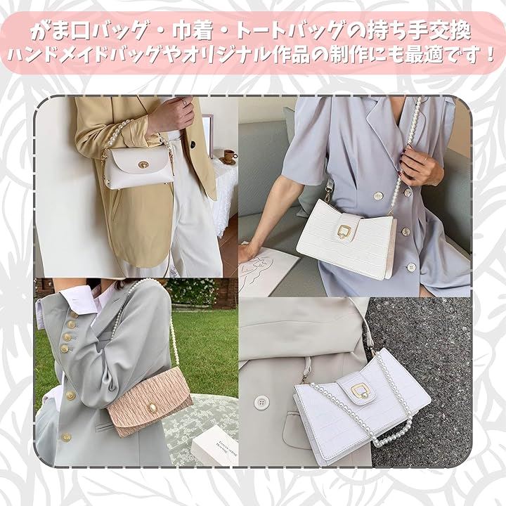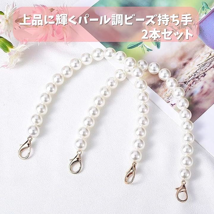 バッグ用ビーズ持ち手 2本セット ハンドル アクセサリーパーツ DIY用 交換用 約30cm 金具付き