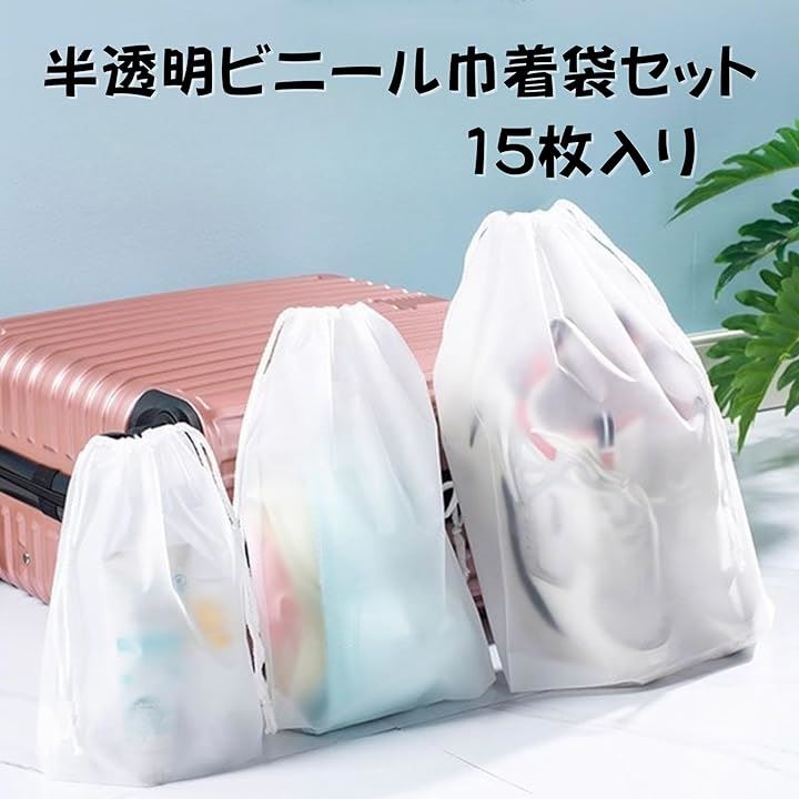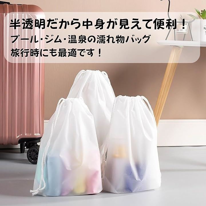 透明 巾着タイプ 小物収納袋 防水ポーチ ギフト・旅行・整理用 イベント配布・お土産・ラッピングにも最適 小・中・大セット