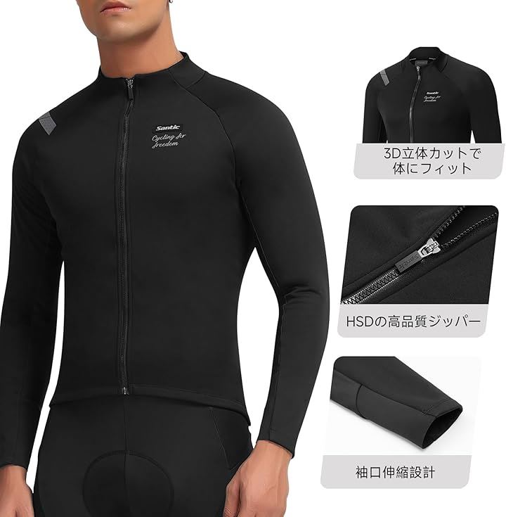 メンズ サイクルジャージ 長袖 裏起毛 ウィンドブレーカー サイクリングジャケット ロードバイク サイクリングジャージ 防風 保温