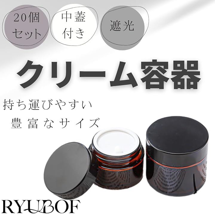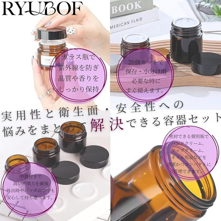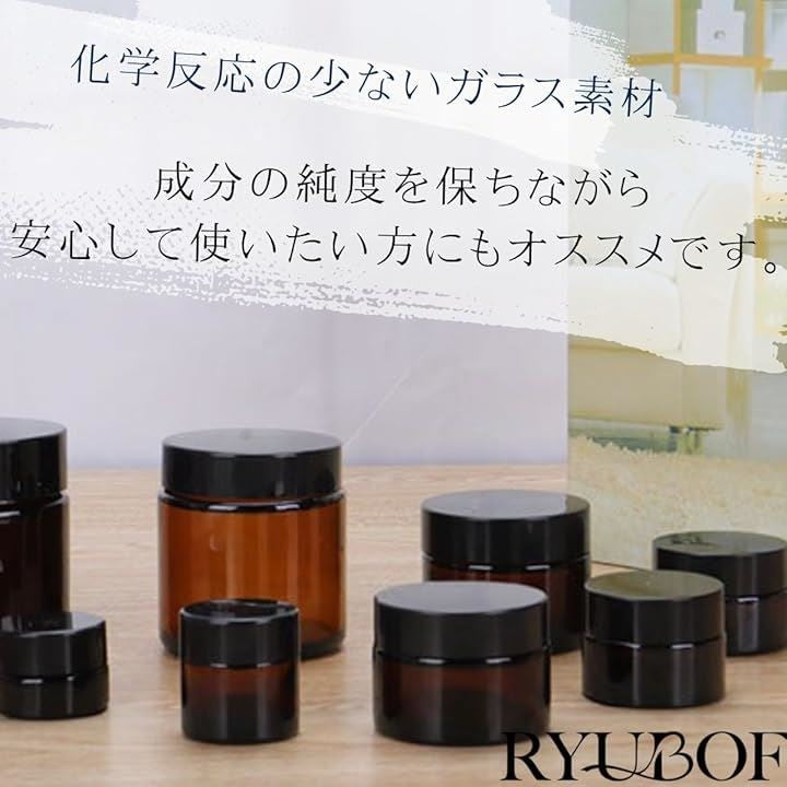 クリーム容器 ガラス製 遮光瓶 中蓋付き 20個セット 詰め替え用 コスメ スキンケア保存 アロマバーム ジャー