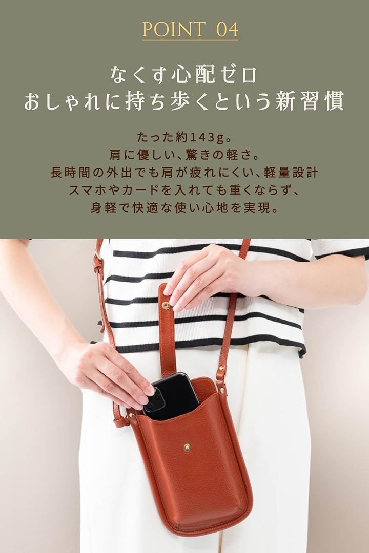 スマホ ショルダー 軽量 143g スマホポーチ ショルダーバッグ スマホポシェット 本革 レディース 携帯 斜め掛け 縦型 カードケース付き