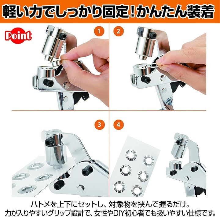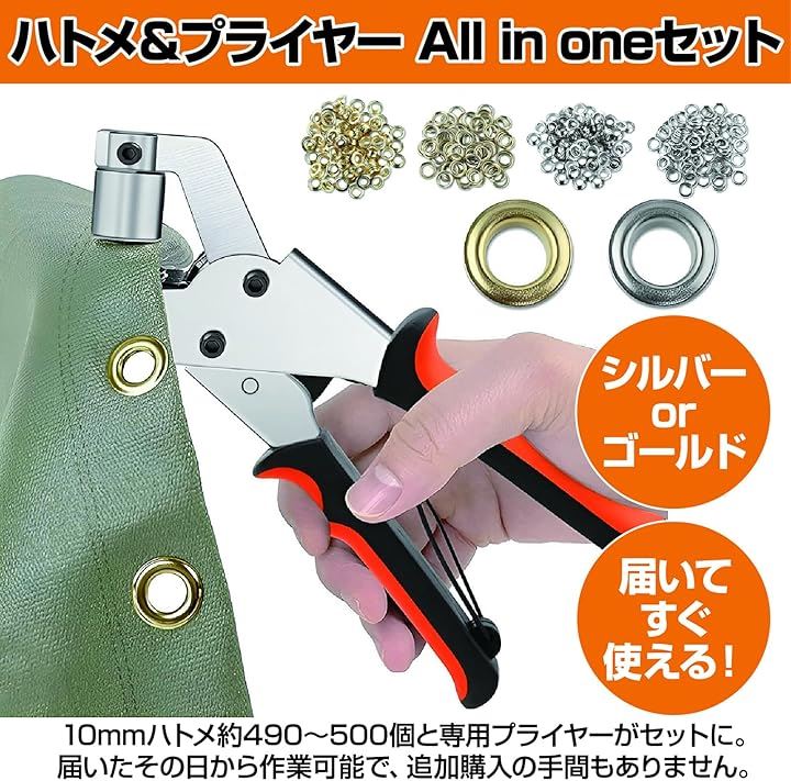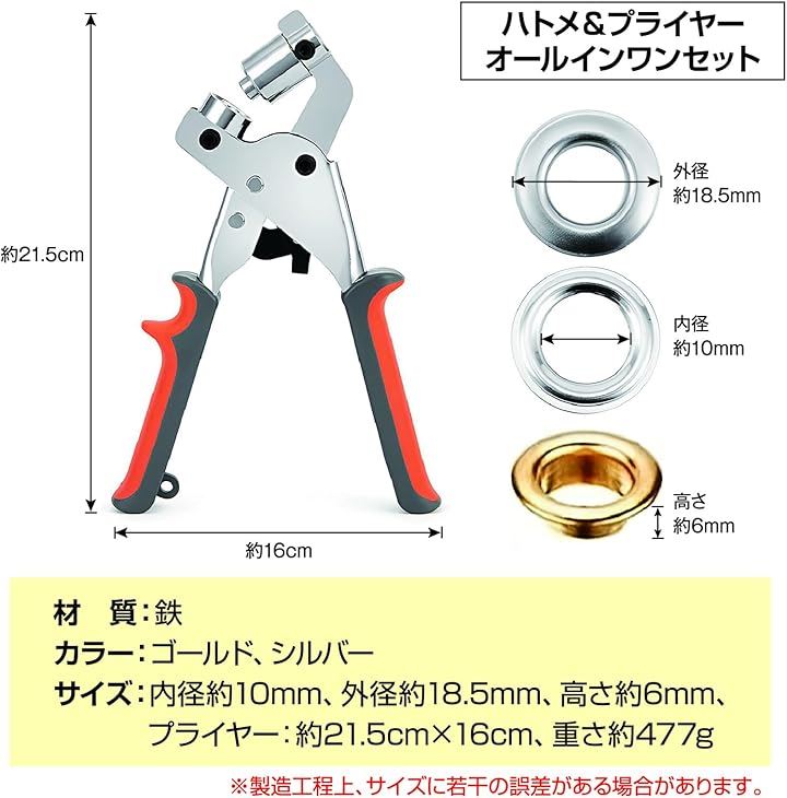 ハトメパンチセット 10mm プライヤー付き ハトメ打ち 布 革製品 補強 DIY