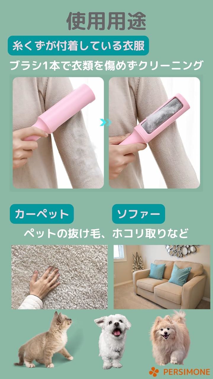 洋服ブラシ 携帯用 回転式 スーツ 衣類 ほこり取り 猫の毛 花粉